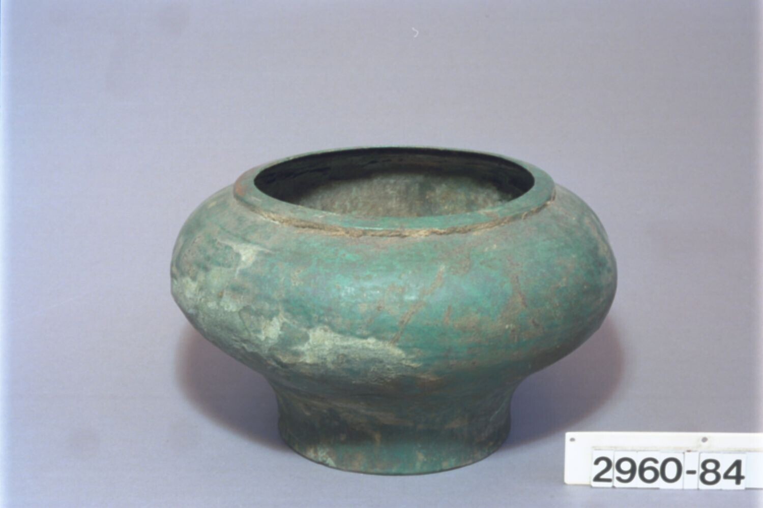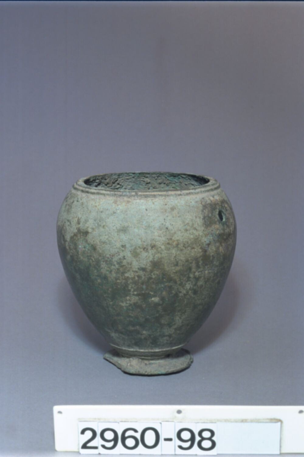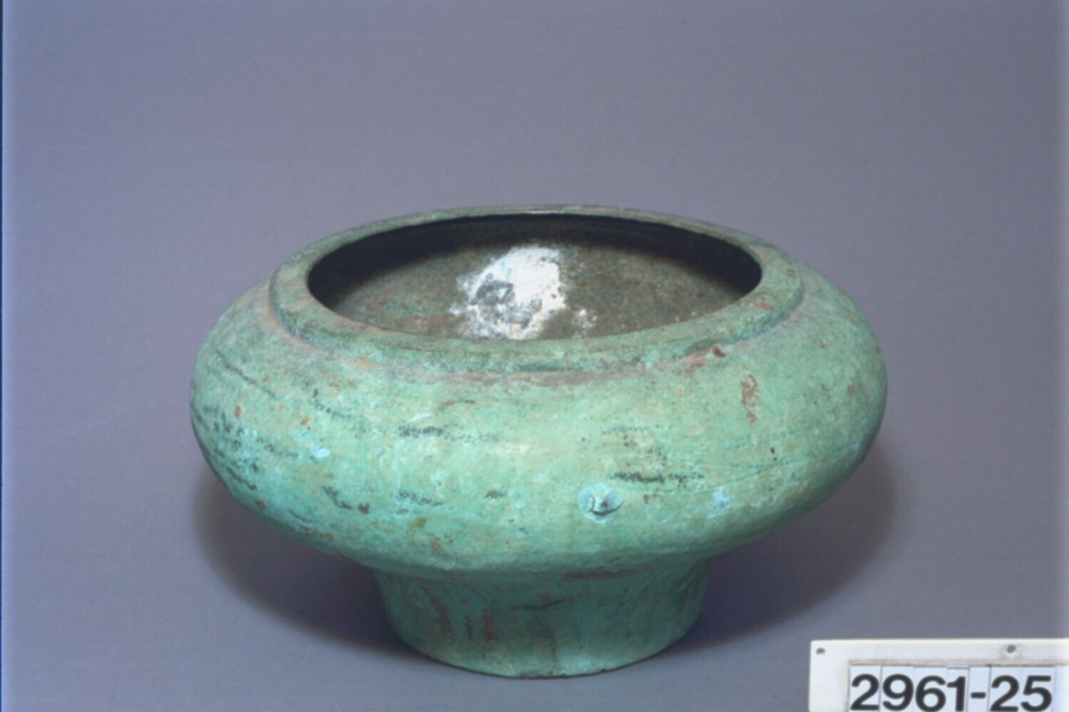 Indo-Javaanse wijwaterbak met gecanneleerde buik brons