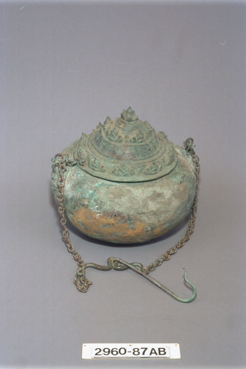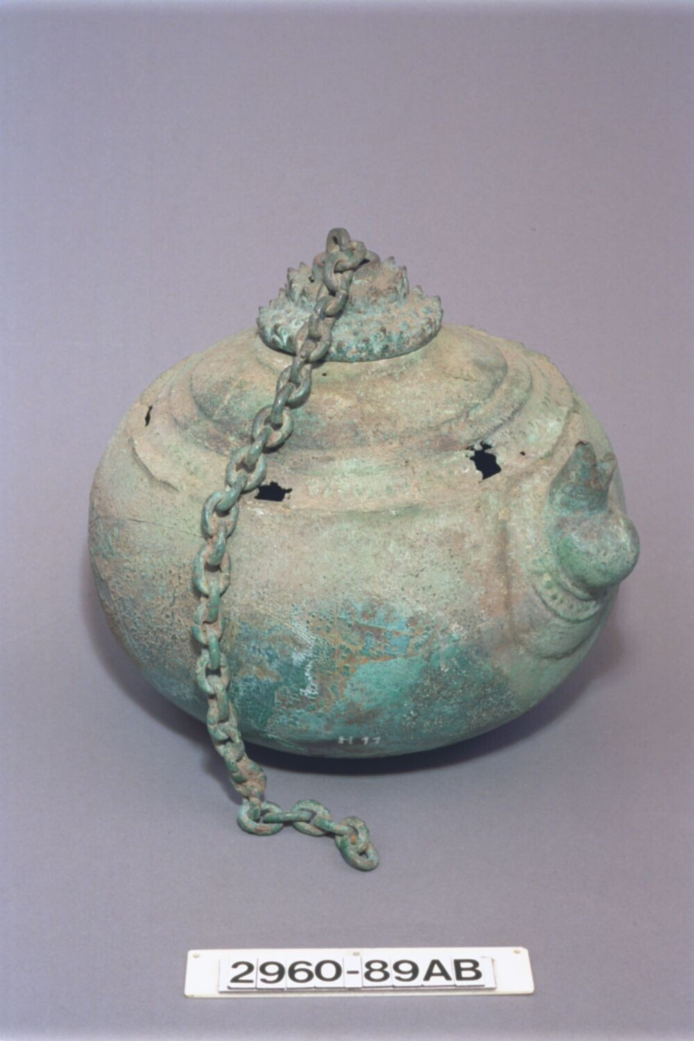 Indo-Javaanse wijwaterpot (a) met (deksel en ketting...