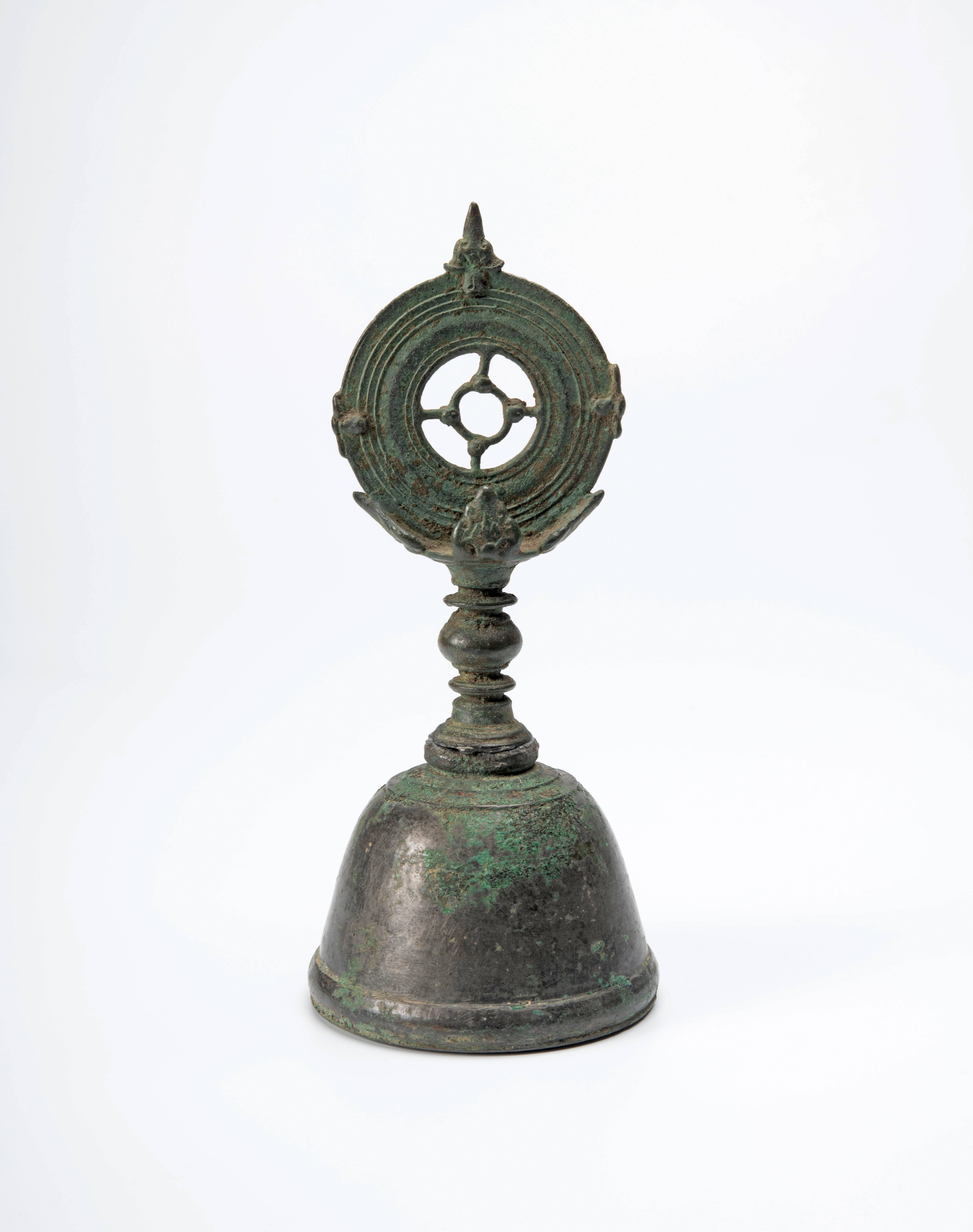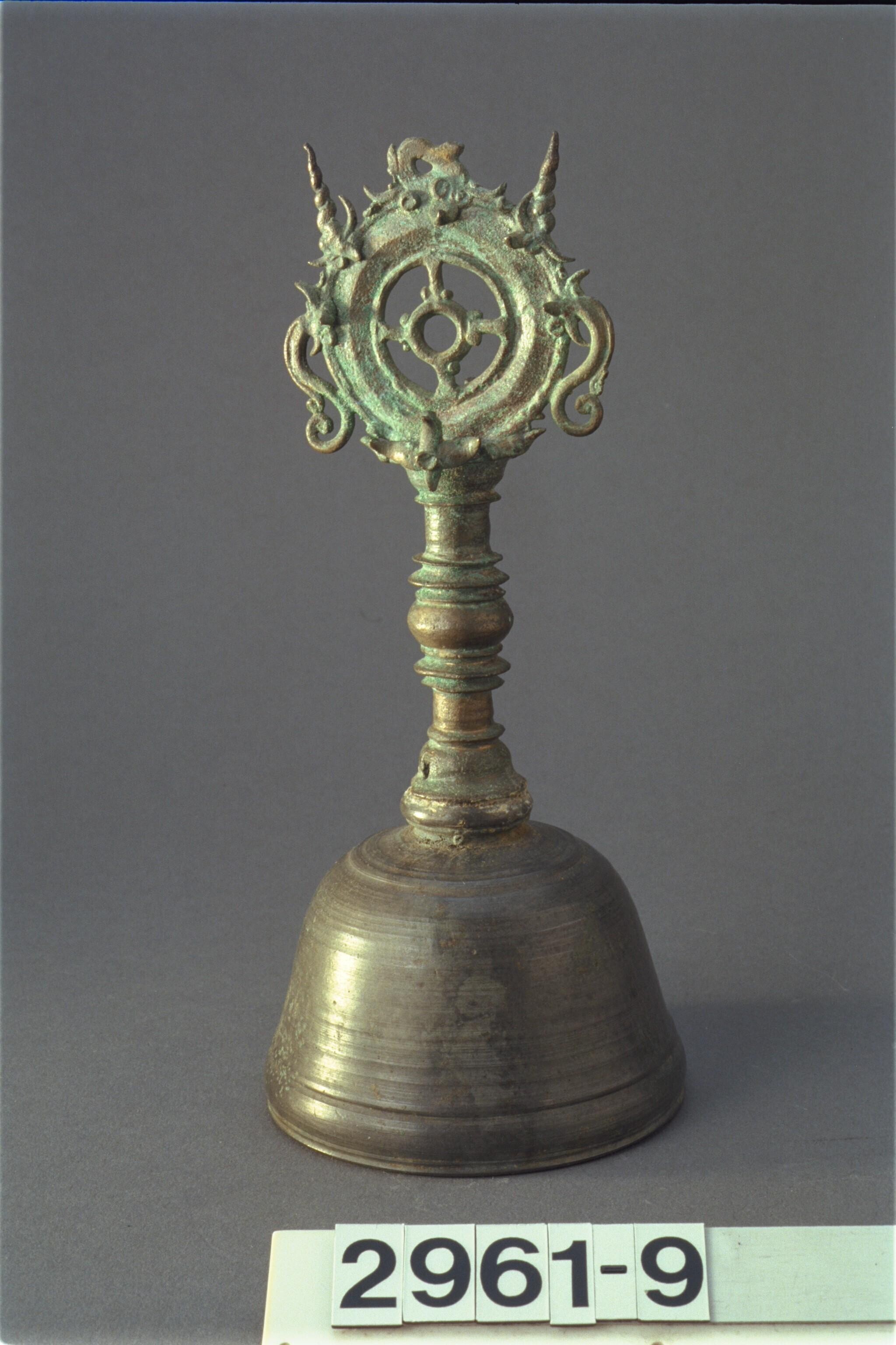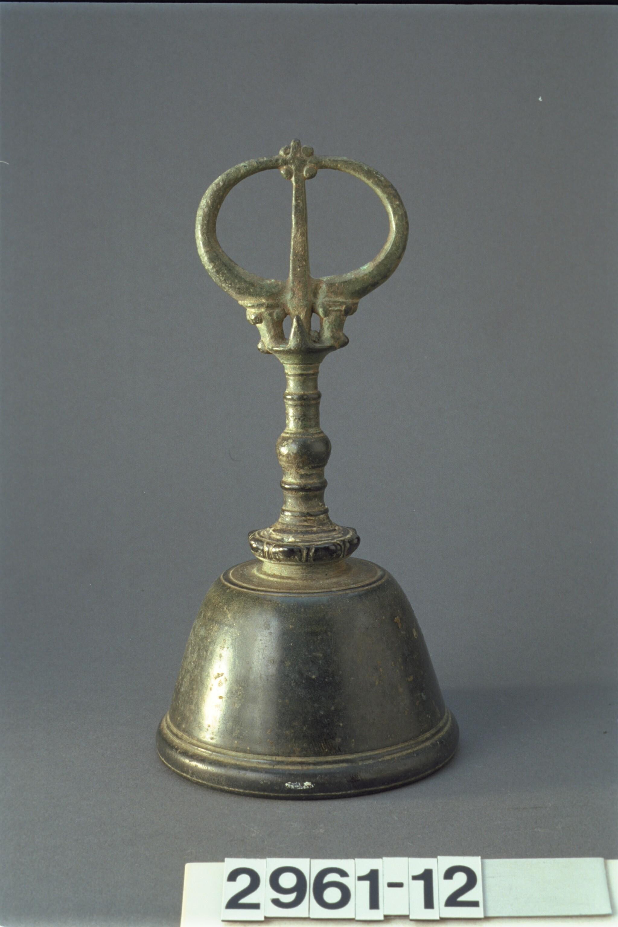 Indo-Javaanse bronzen priesterbel gesloten drietandbel