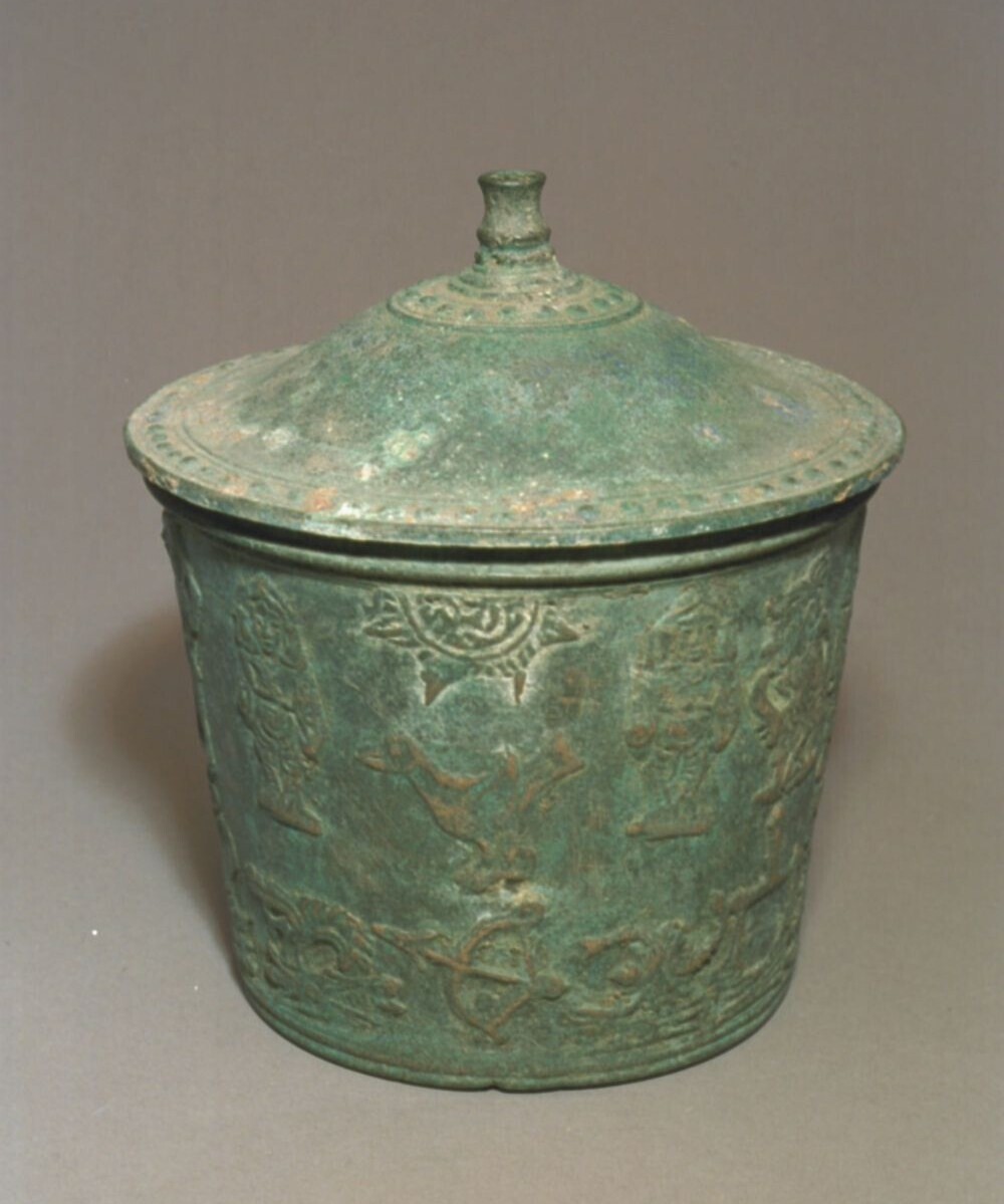 Bronzen Indo-Javaanse zodiakbeker met deksel