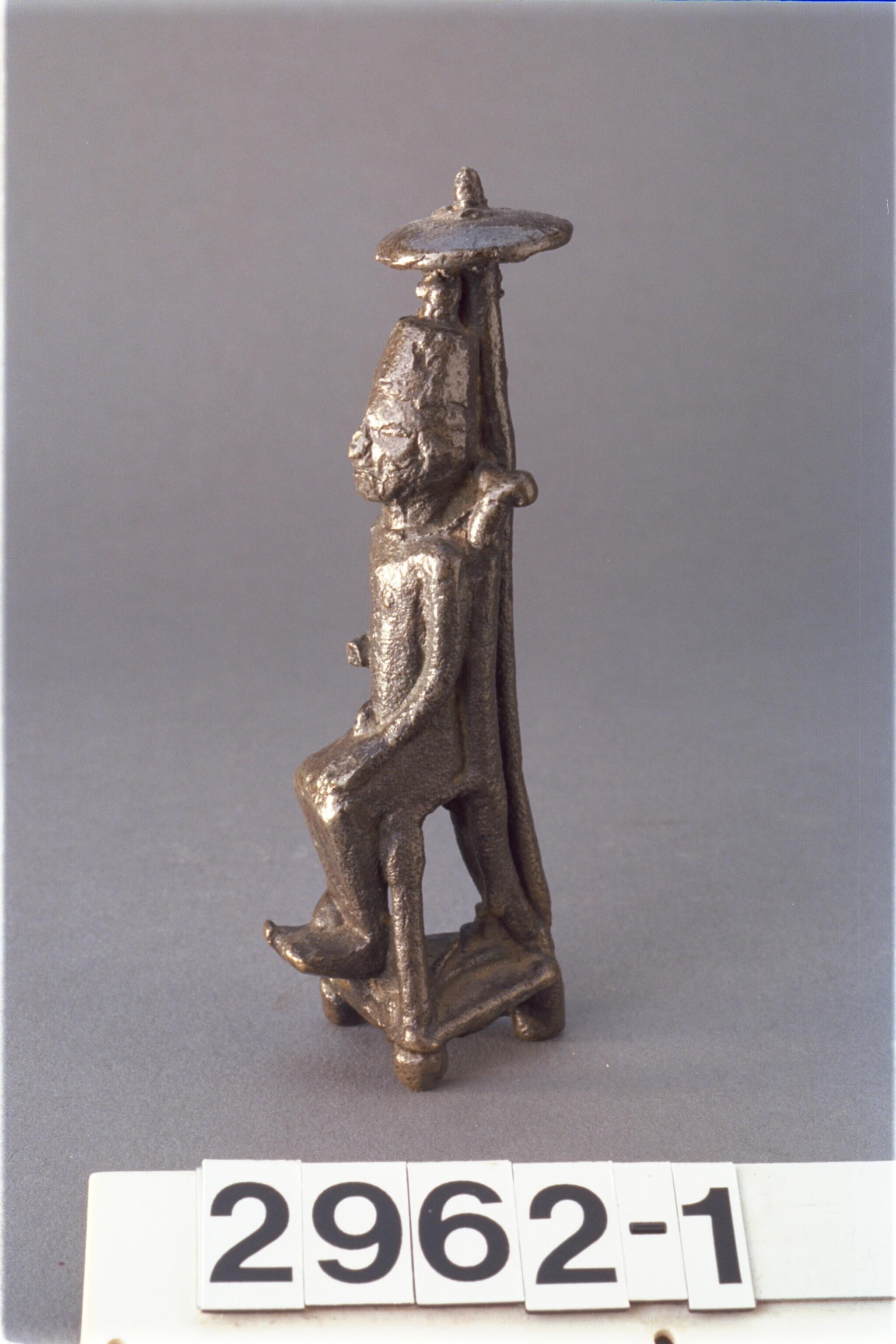 Bronzen beeldje boerse kunst man op zetel met pajong...