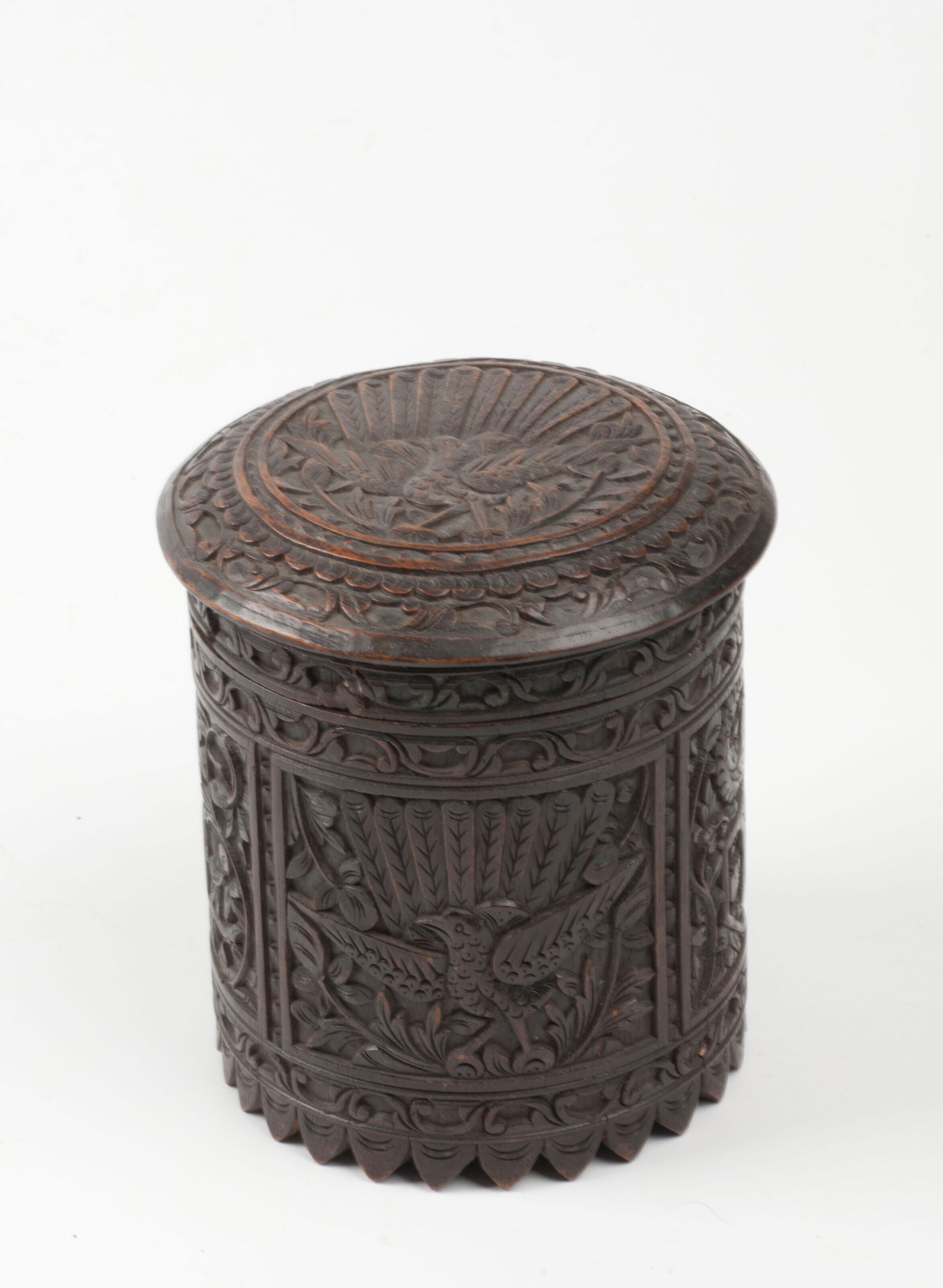 Tabaksdoos (a) met (deksel b) hout met snijwerk
