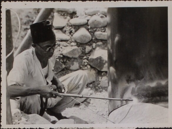 Javaanse arbeider bezig met laswerkzaamheden bij sch...