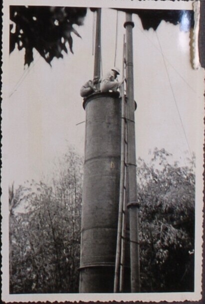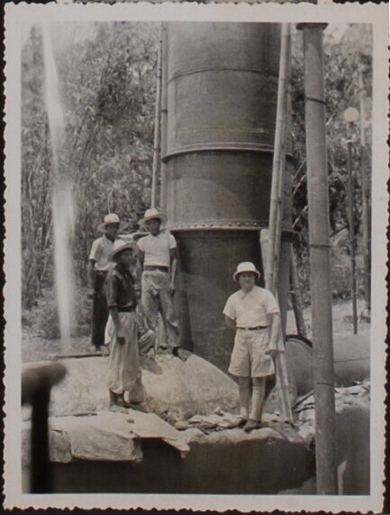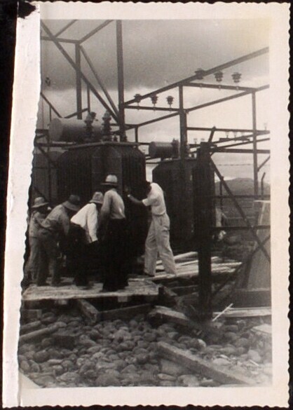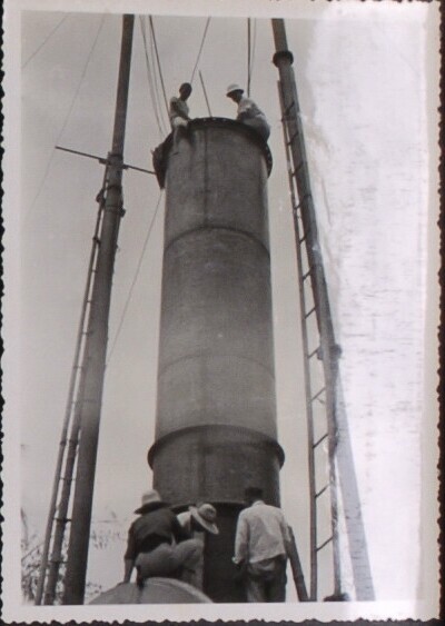 Mannen bij schoorsteenpijp waterkrachtcentrale A.N.I...