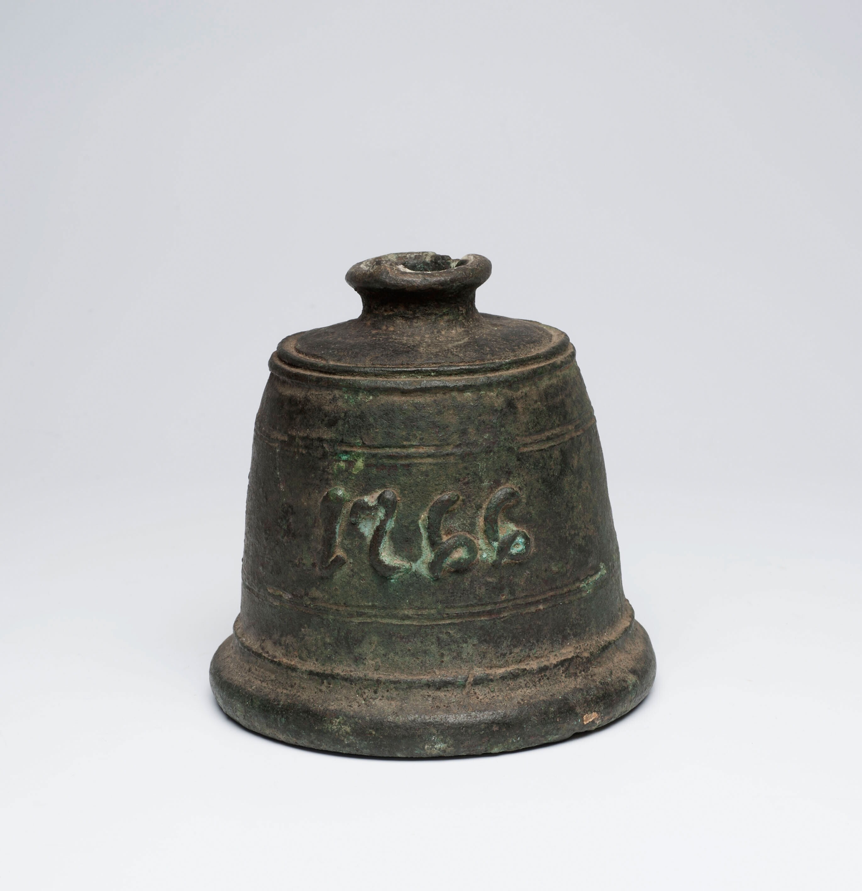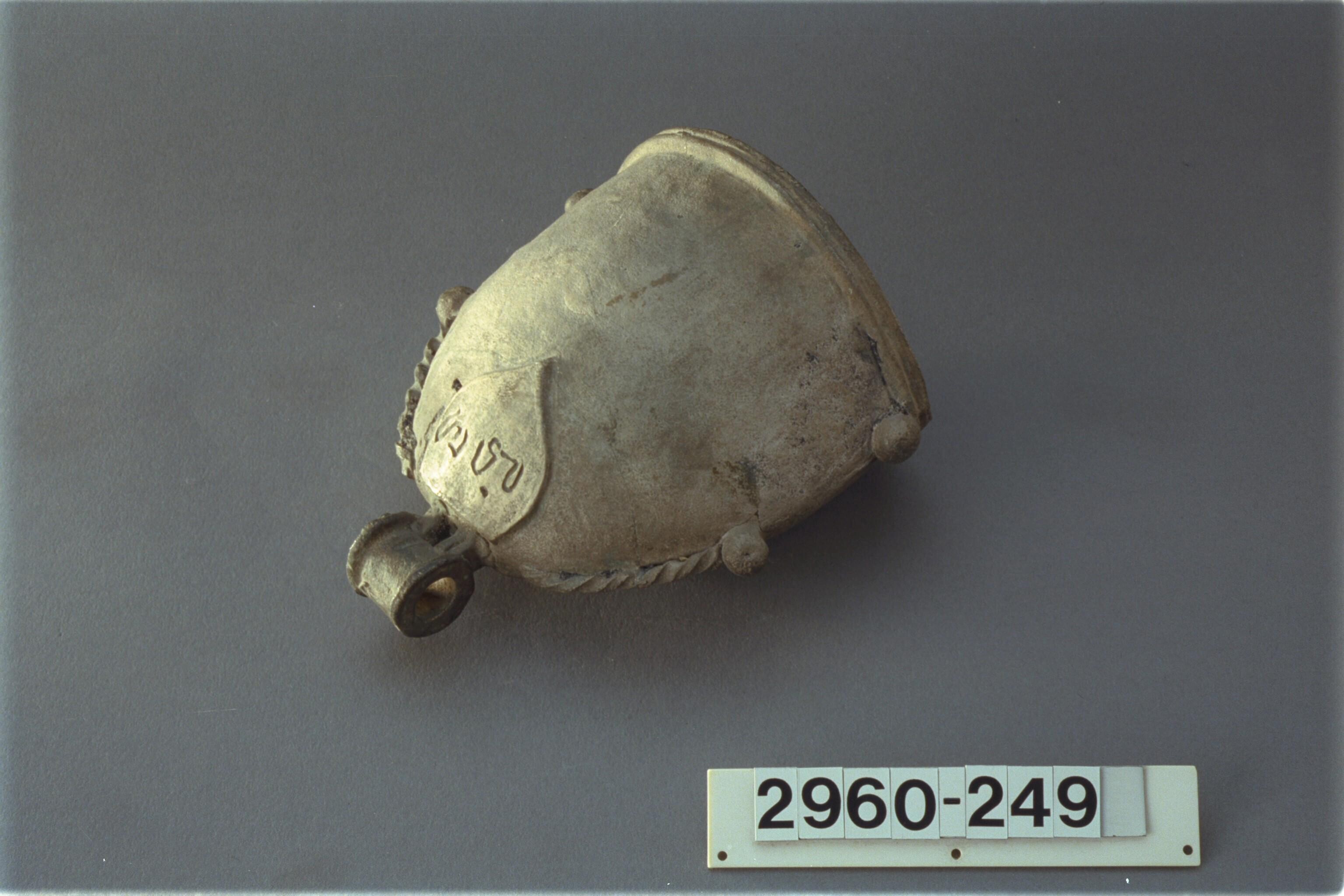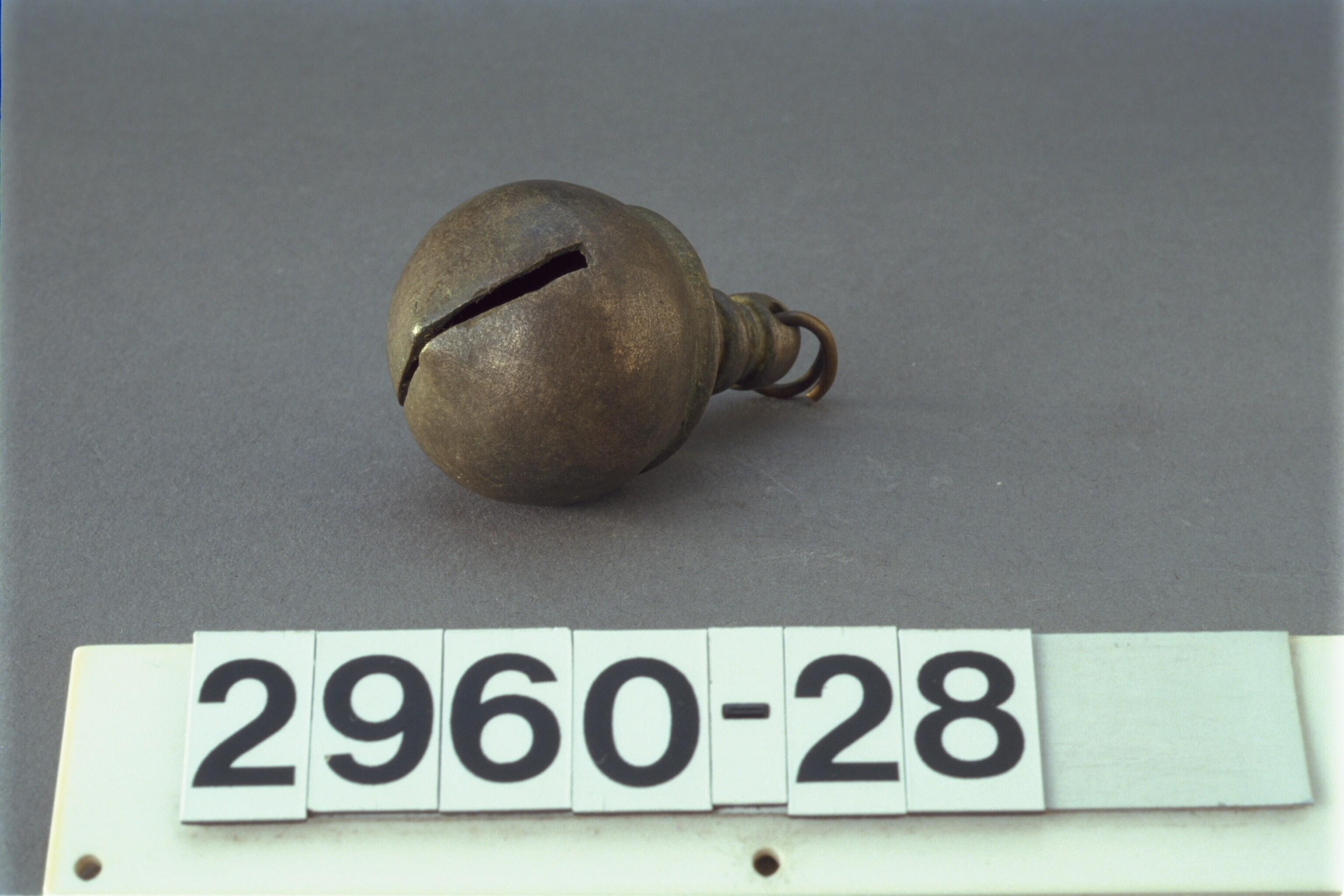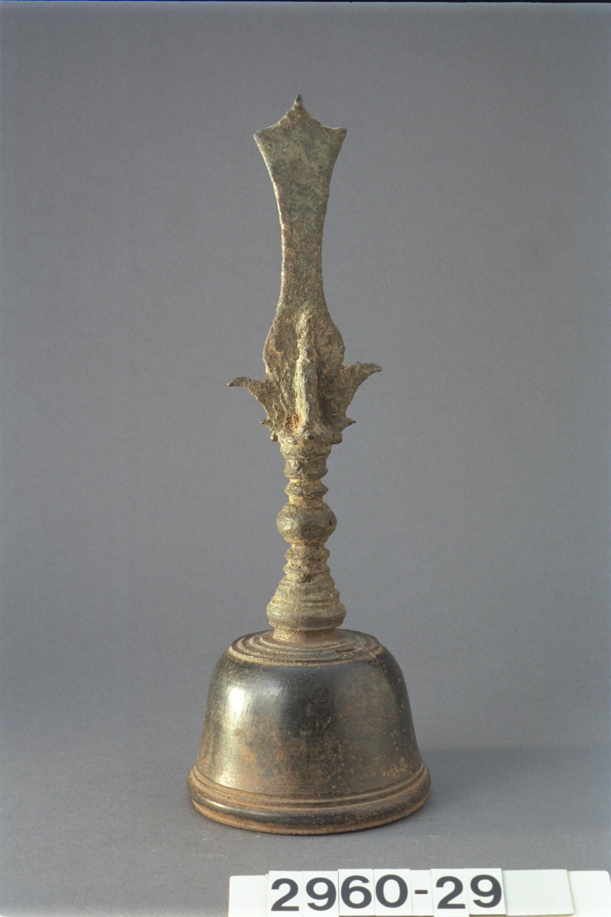 Bidschel met handvat (top afgebroken ) en klepel brons