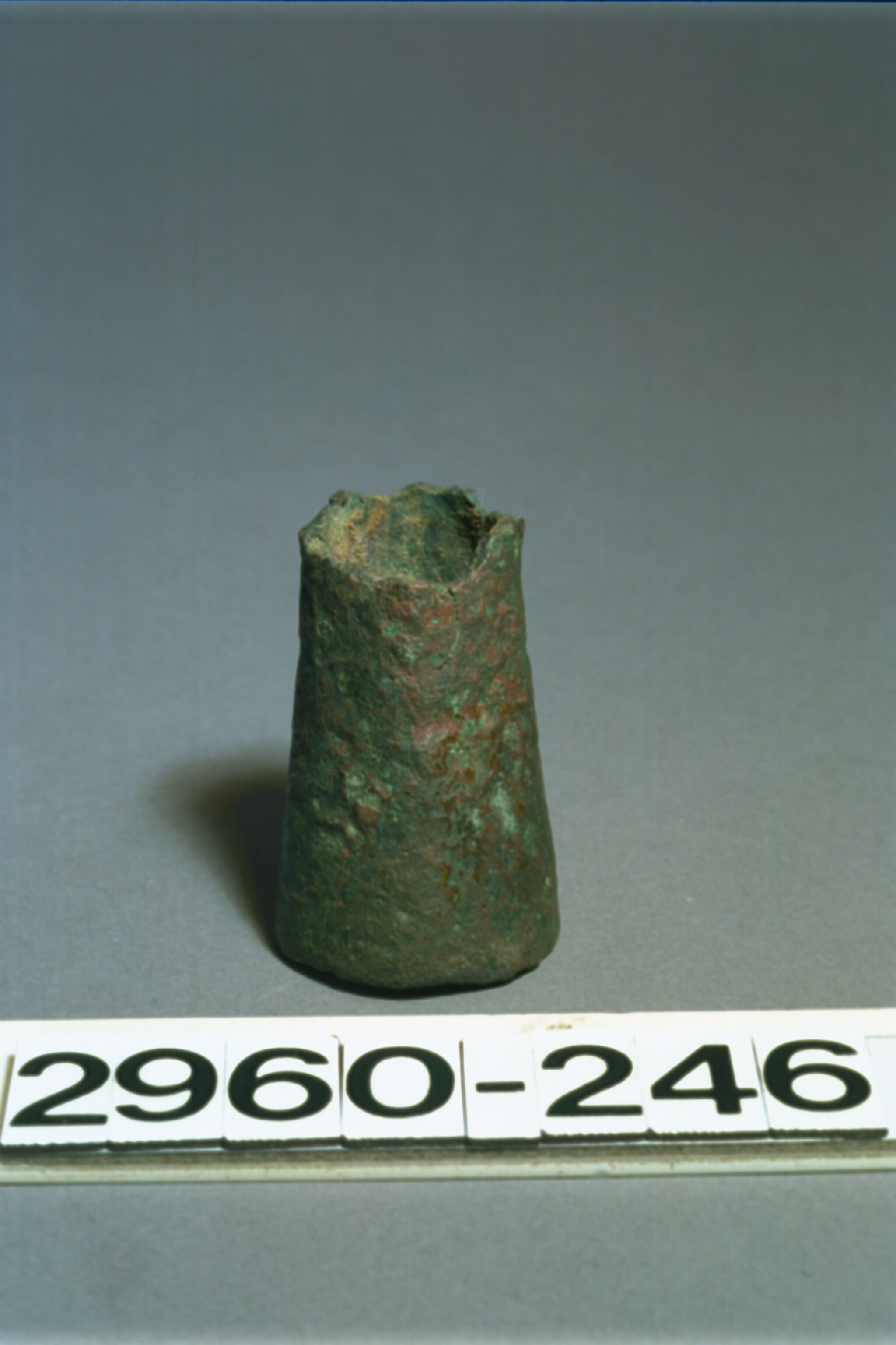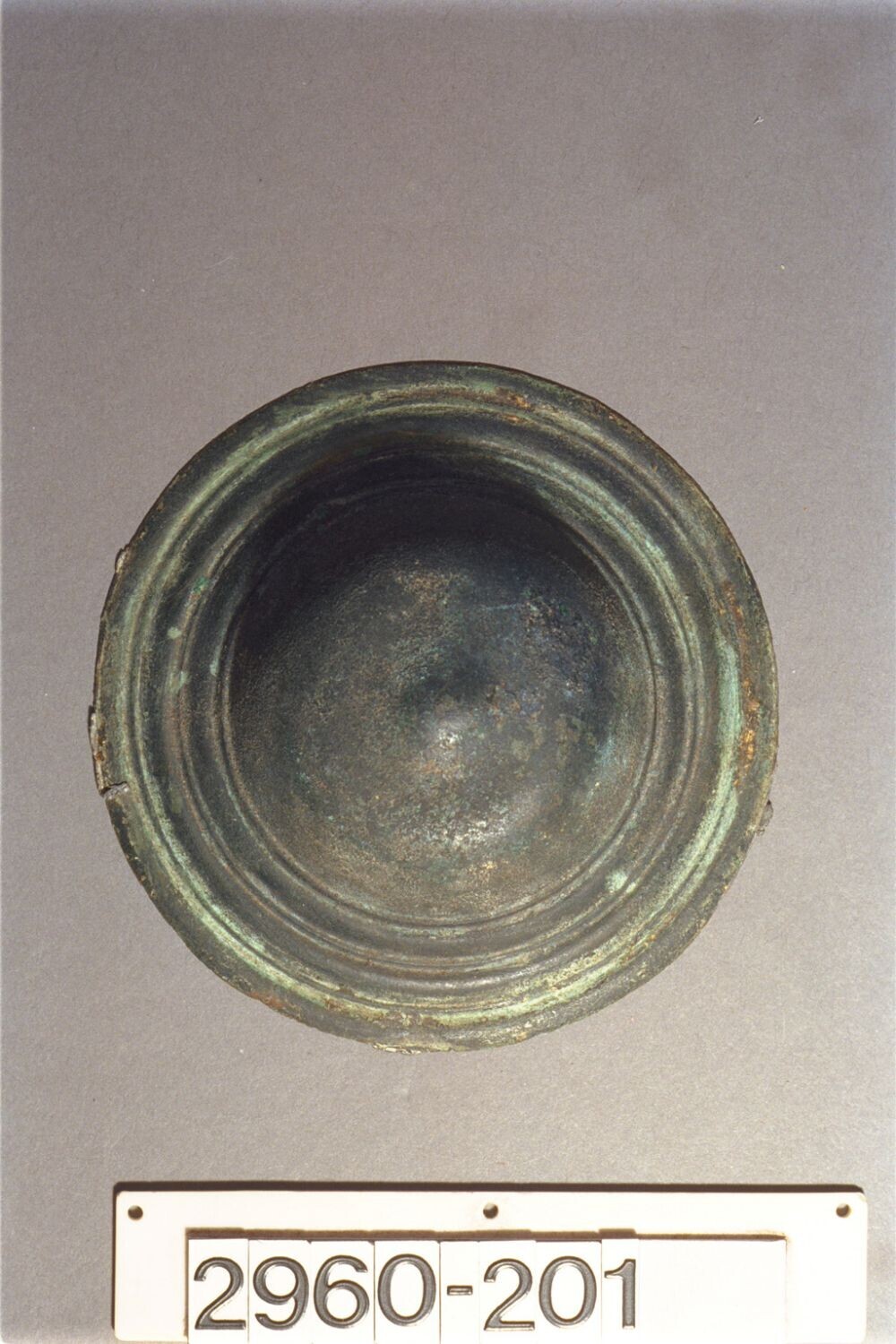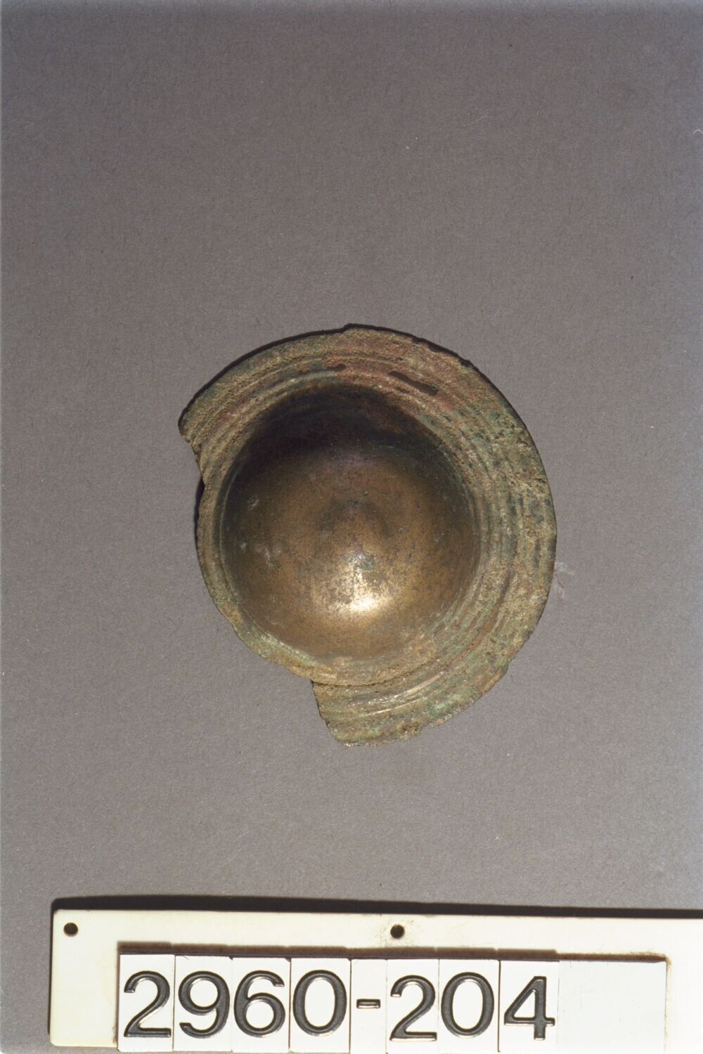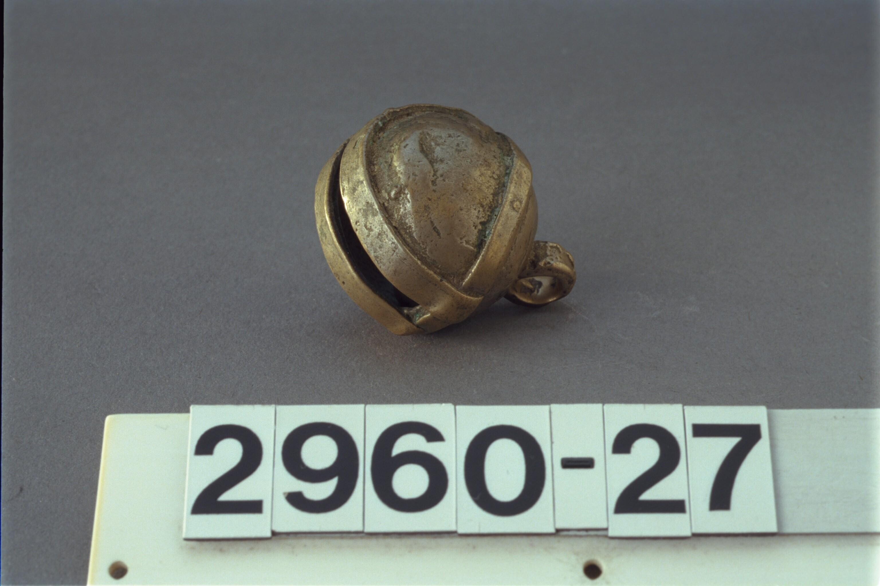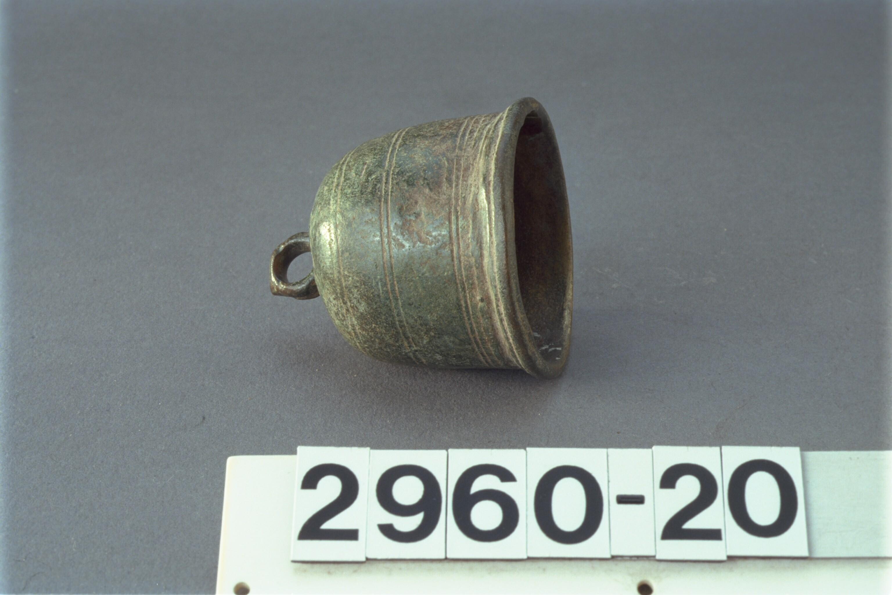 Bidschel met handvat (top afgebroken ) en klepel brons