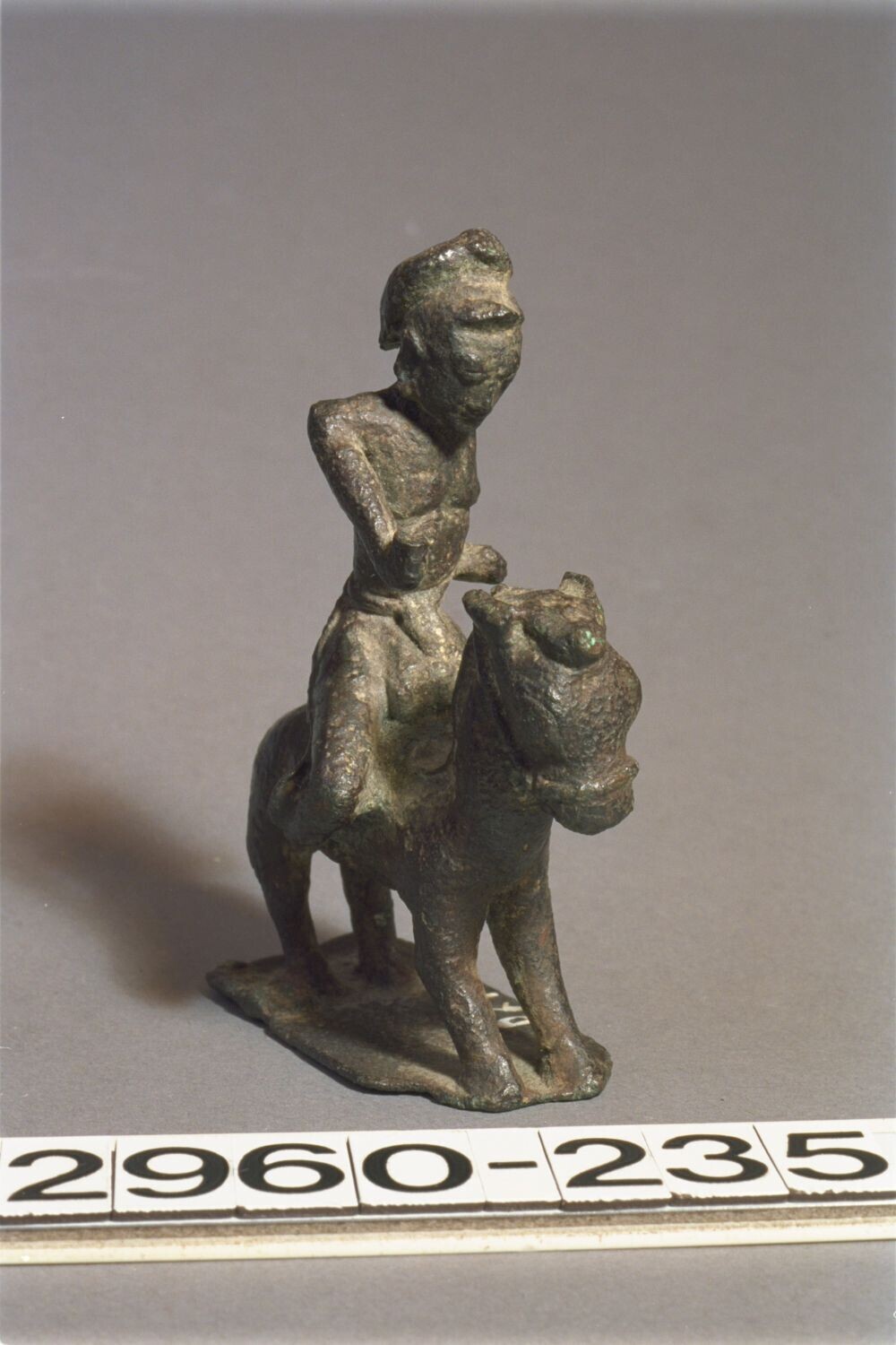 Indo-Javaans mannetje op paard op rond voetstukje brons