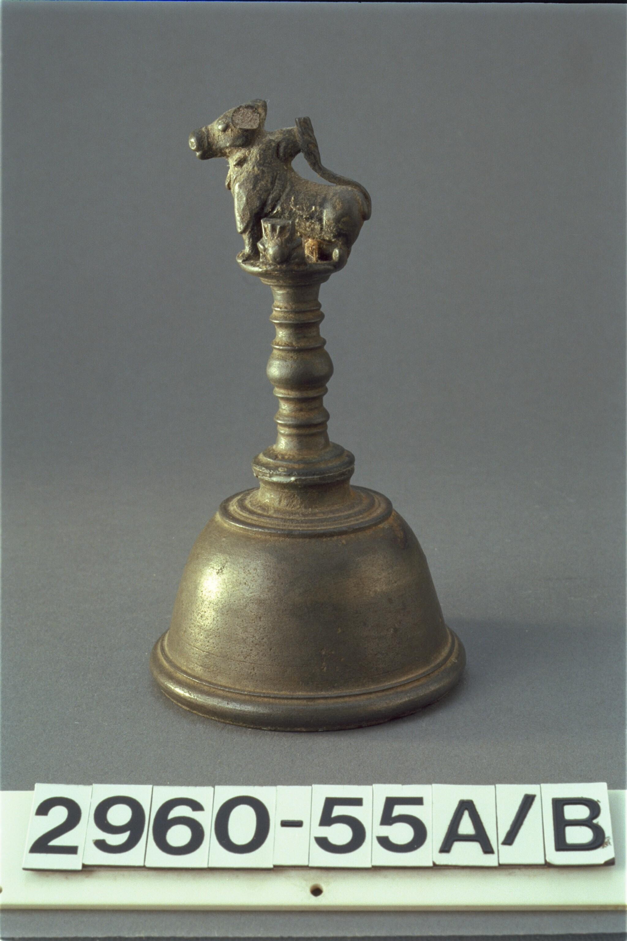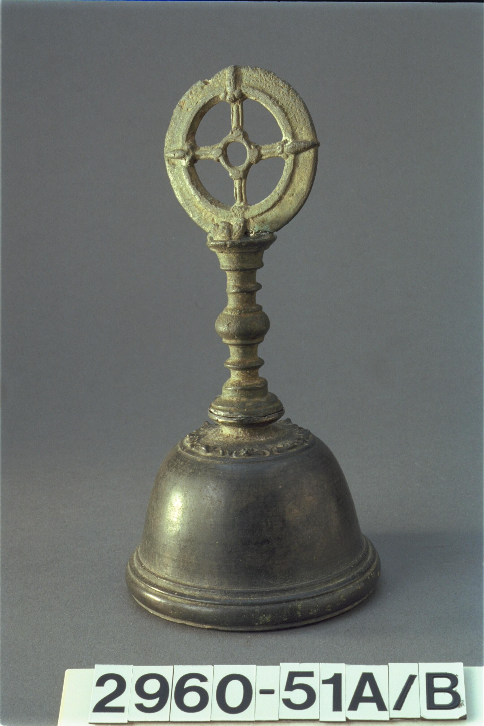 Bidschel met handvat en klepel (a) topstuk los (b) s...