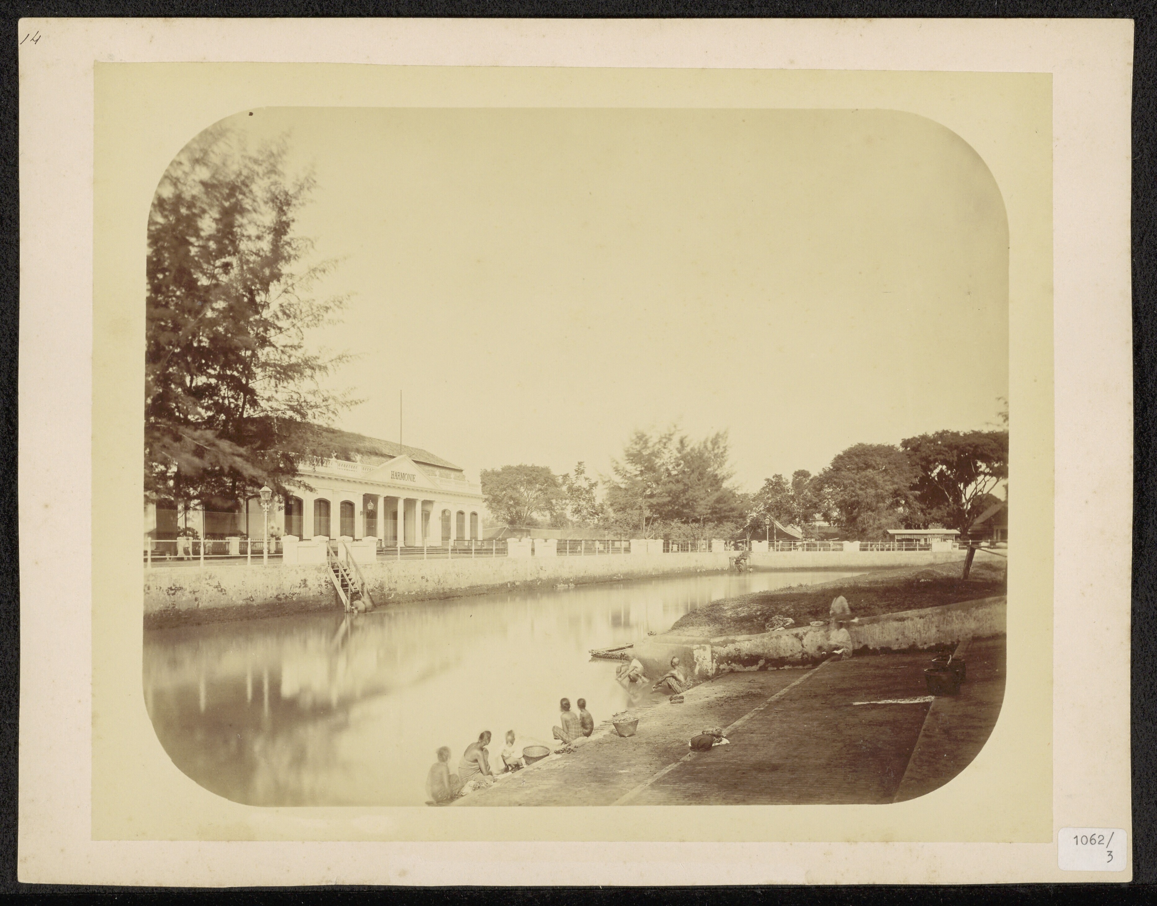 Vrouwen doen de was in de Molenvliet ter hoogte van ...