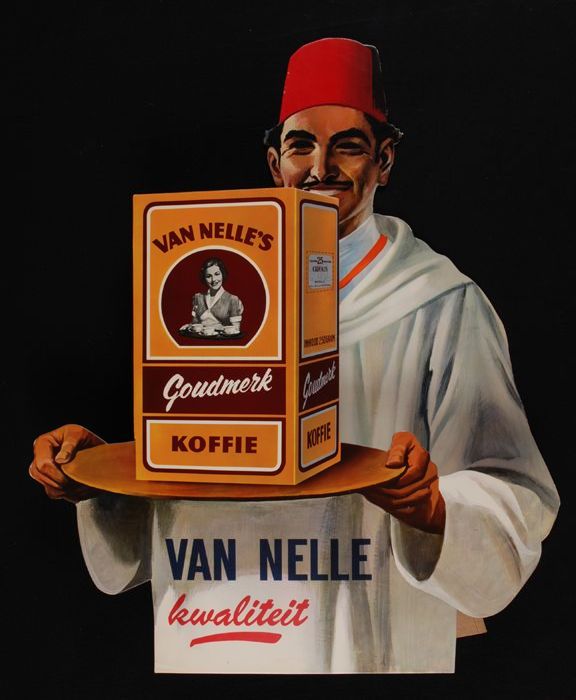Reclamebord van Van Nelle's "Goudmerk" koffie, man m...