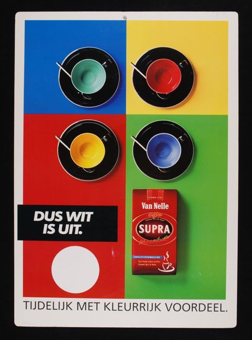 Reclamebord van Van Nelle met onder meer drie versch...