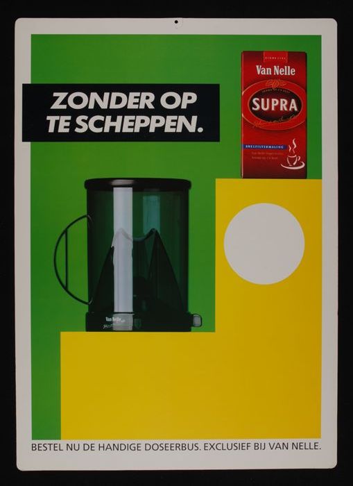 Reclamebord Van Nelle's "Supra Koffie" met doseerbus