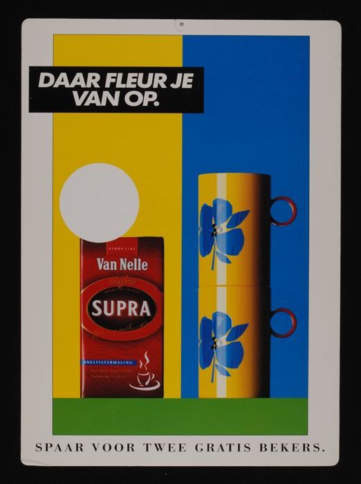 Reclamebord Van Nelle's "Supra" koffie met twee bekers