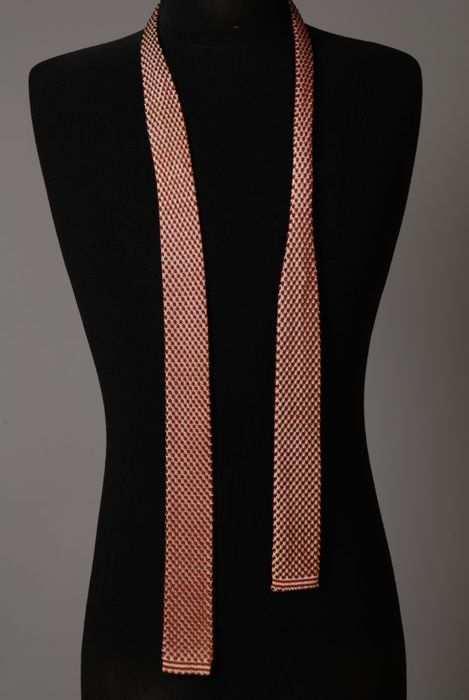 Gebreide bruin/rode en witte stropdas