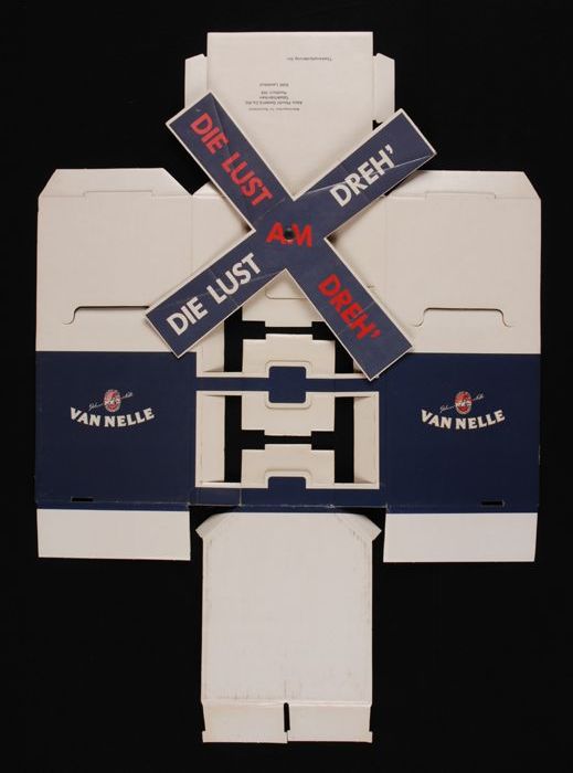 Plat gevouwen doos met molenwieken, Van Nelle's shag...
