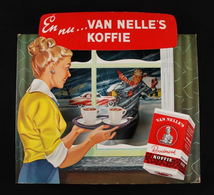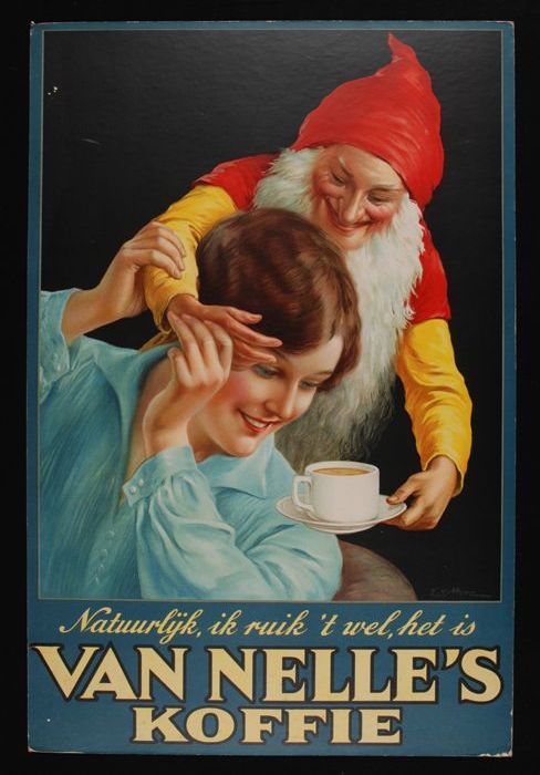 Reclamebord Van Nelle's koffie, vrouw en kabouter, V...