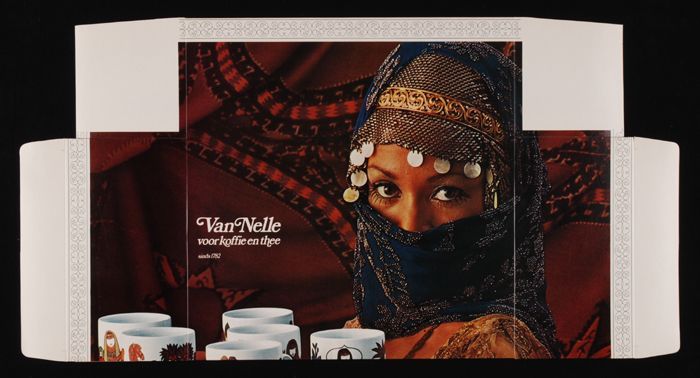 Twee plat gevouwen dozen Van Nelle met gesluierde vr...