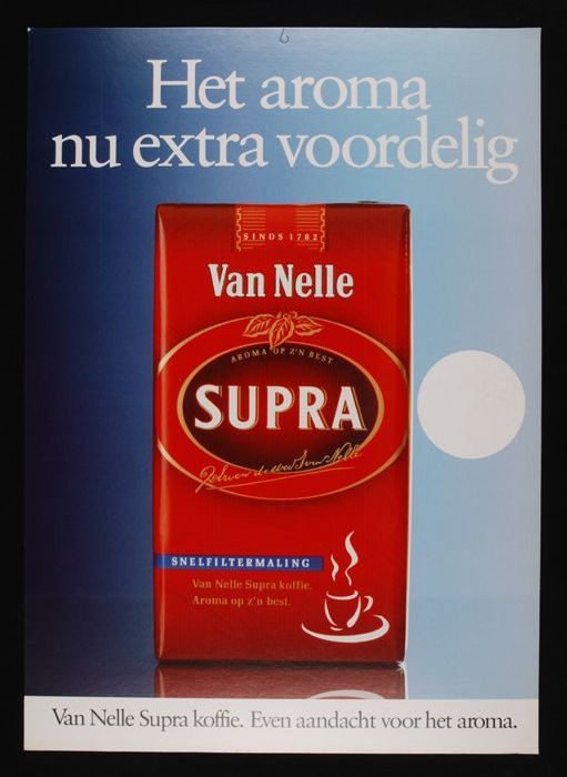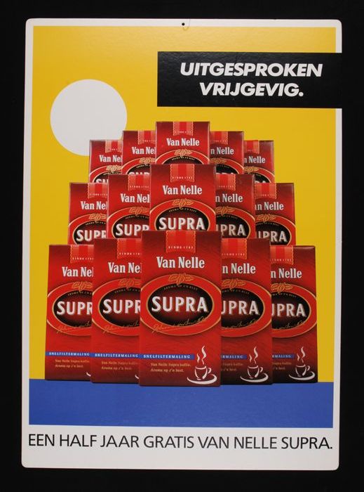 Reclamebord "SUPRA" koffie van Van Nelle met aandach...