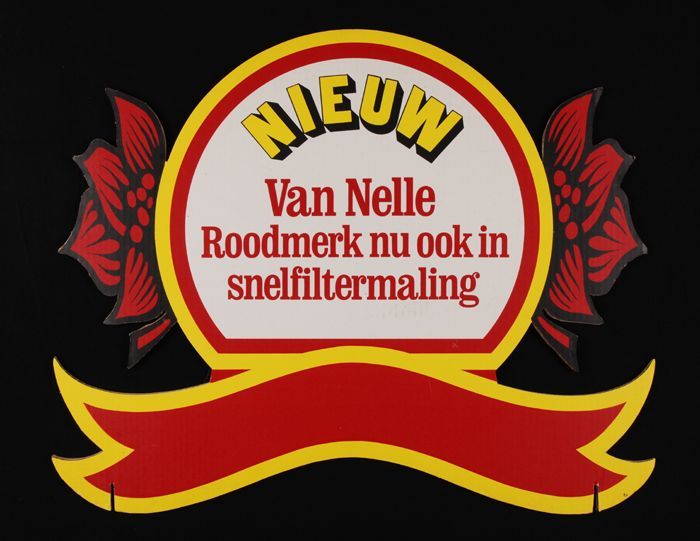 Reclamebord voor koffie van Van Nelle met "bloemenmo...