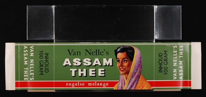 Twee grote, vlakke papieren dozen Van Nelle´s "ASSAM...
