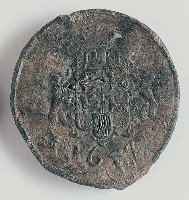 Lakenlood met wapen van Rotterdam en jaartal 1654 (?)