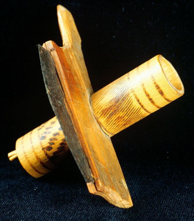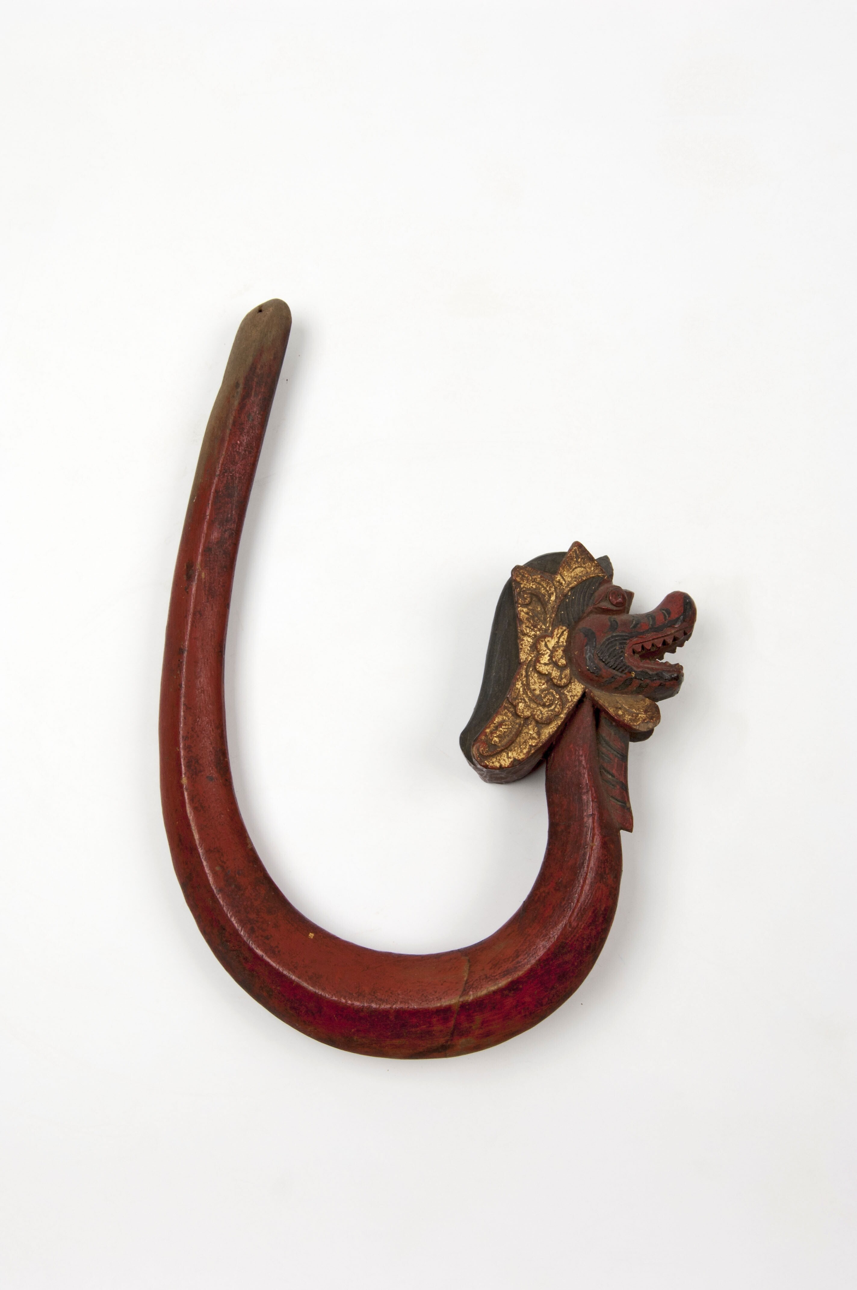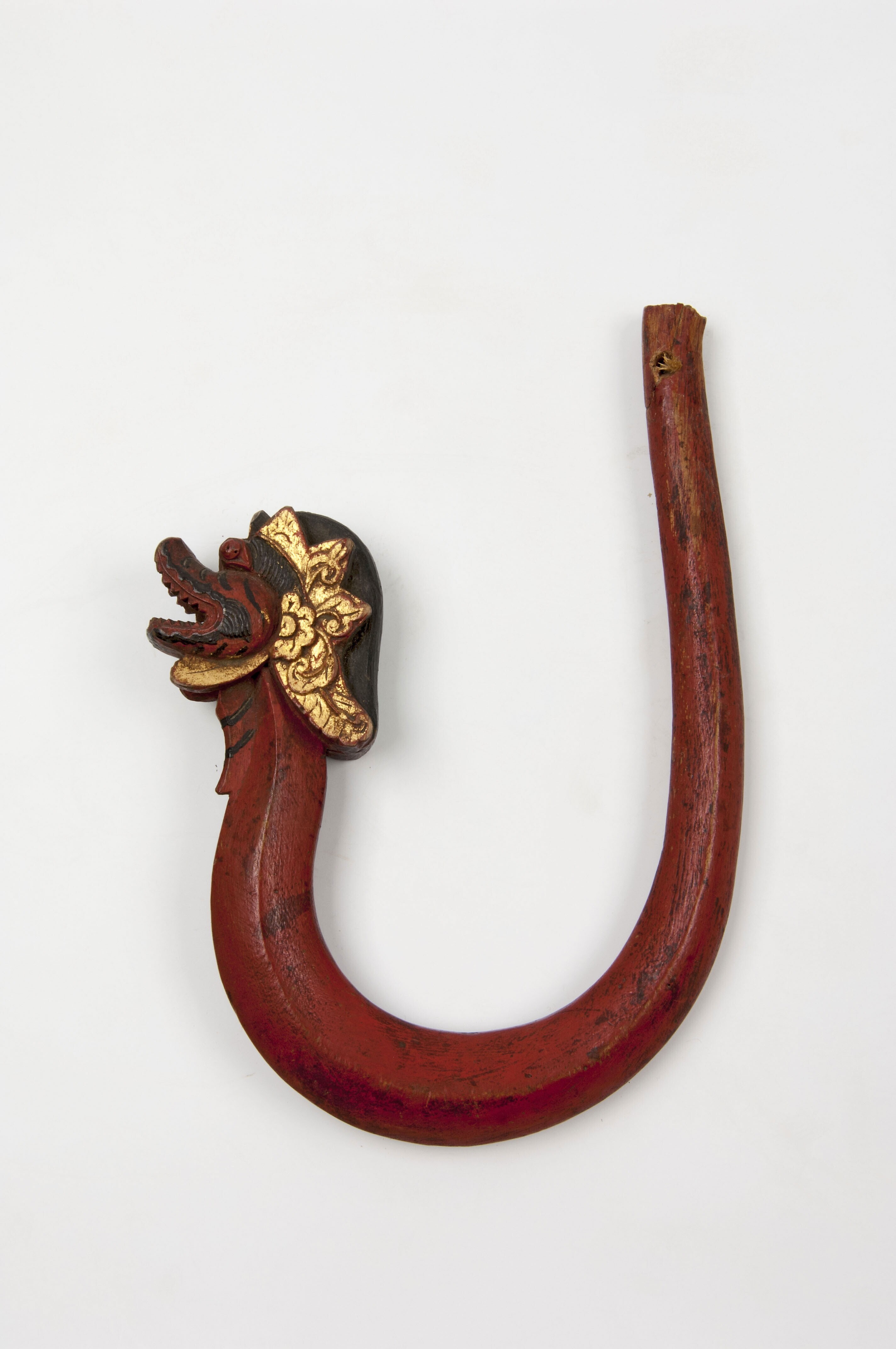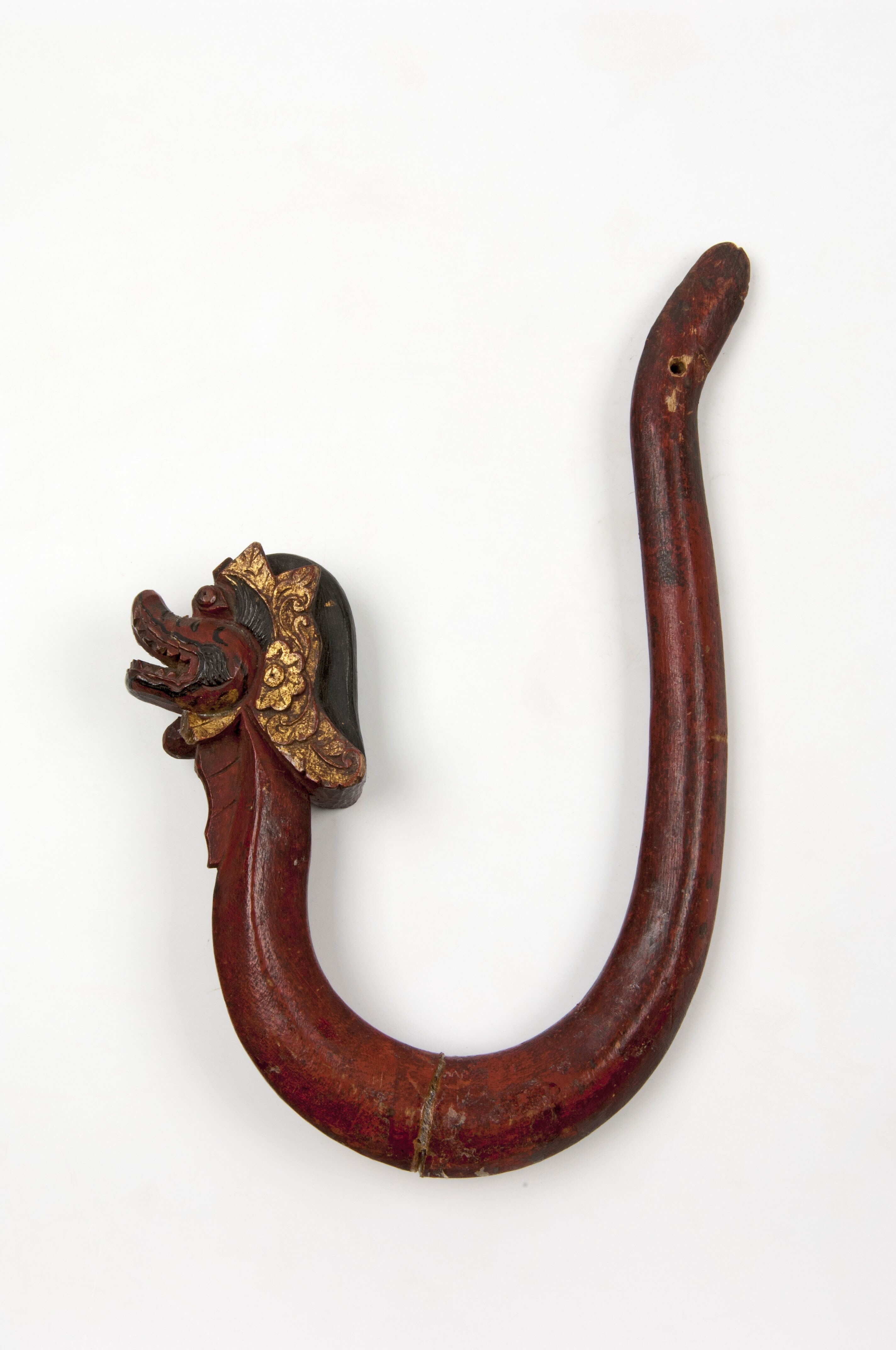 Houten beschilderde klamboehaak in nagavorm