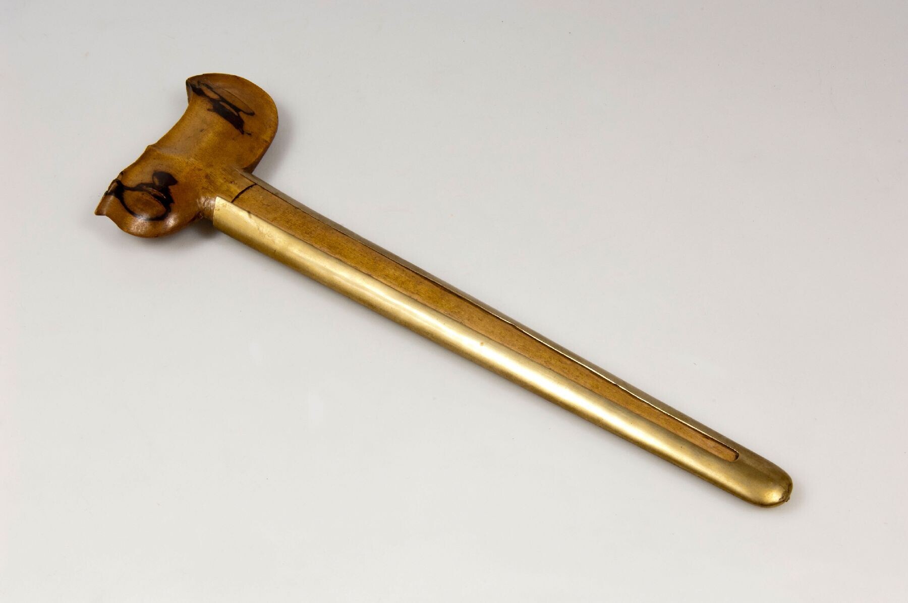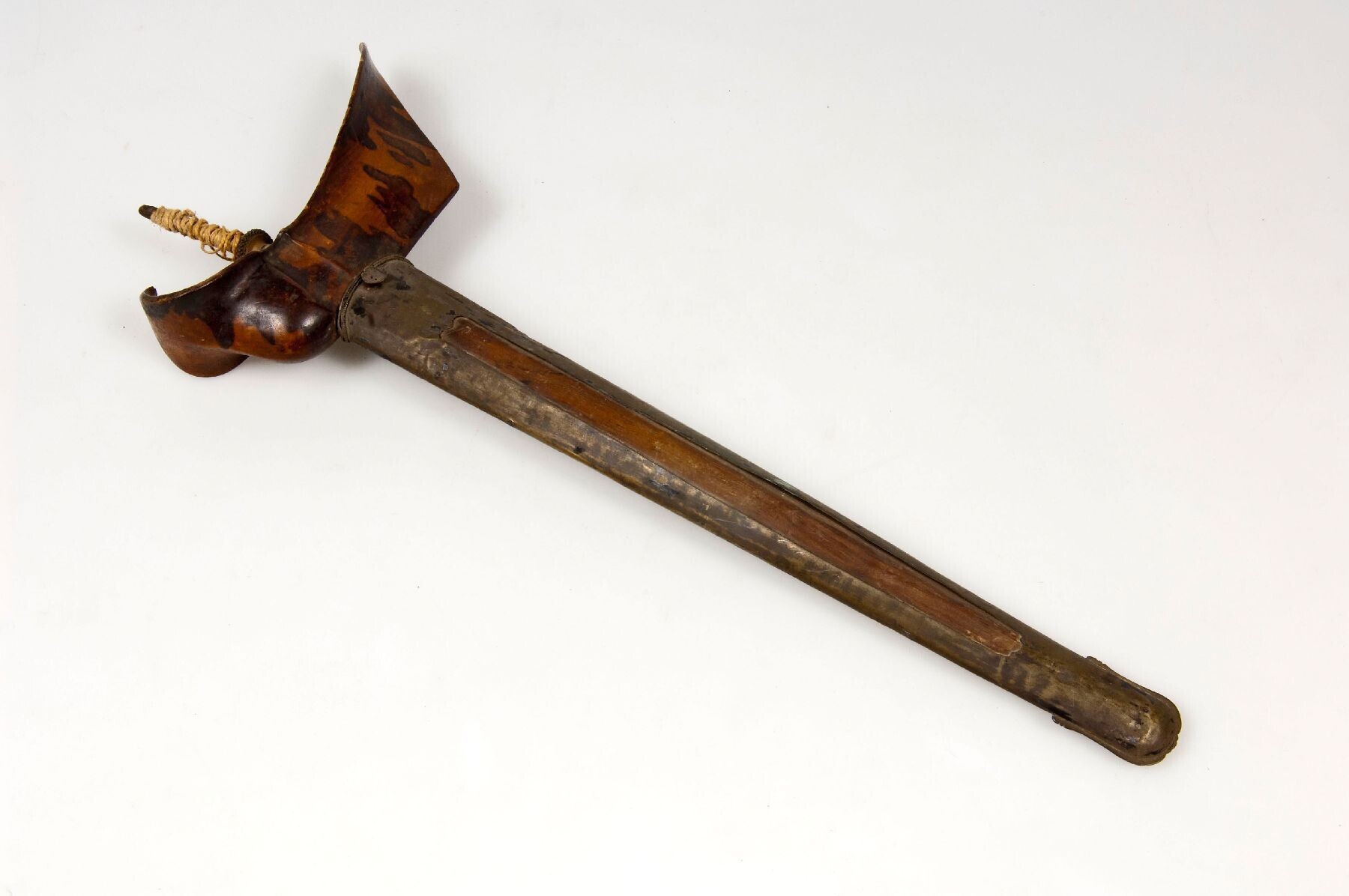 Houten krisschede met koperen overschede