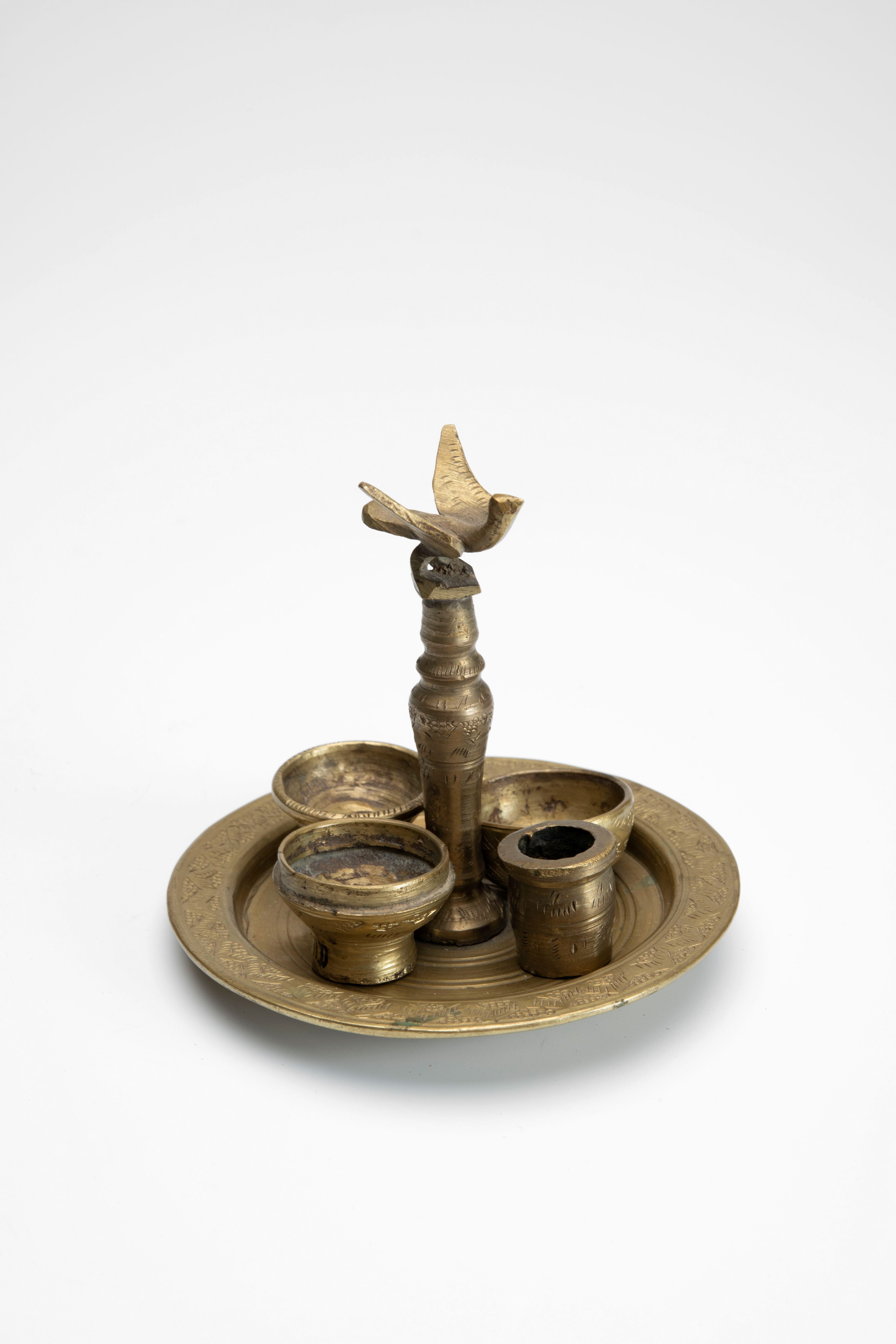 Messing sirihbladhouder met daarop de afbeelding van...