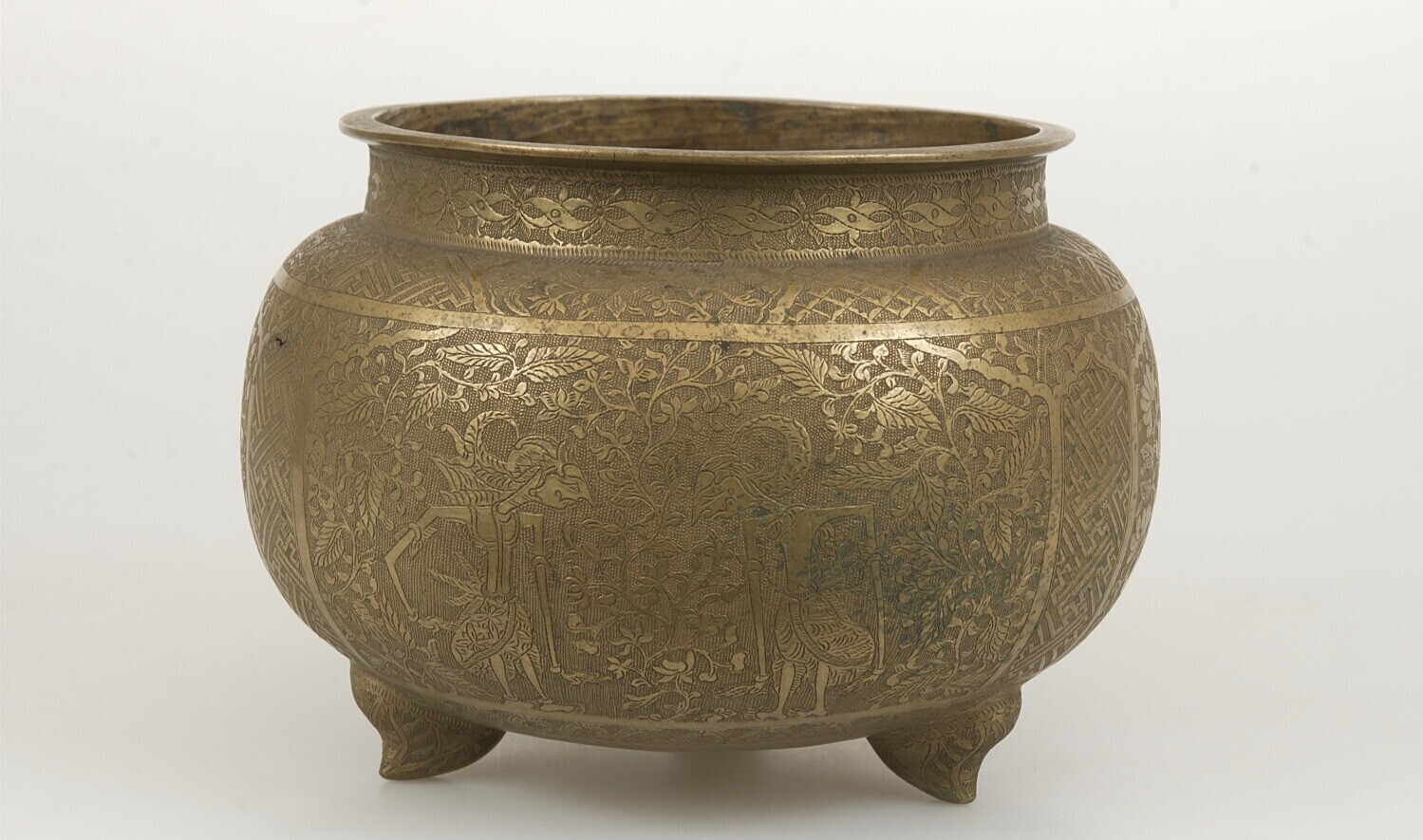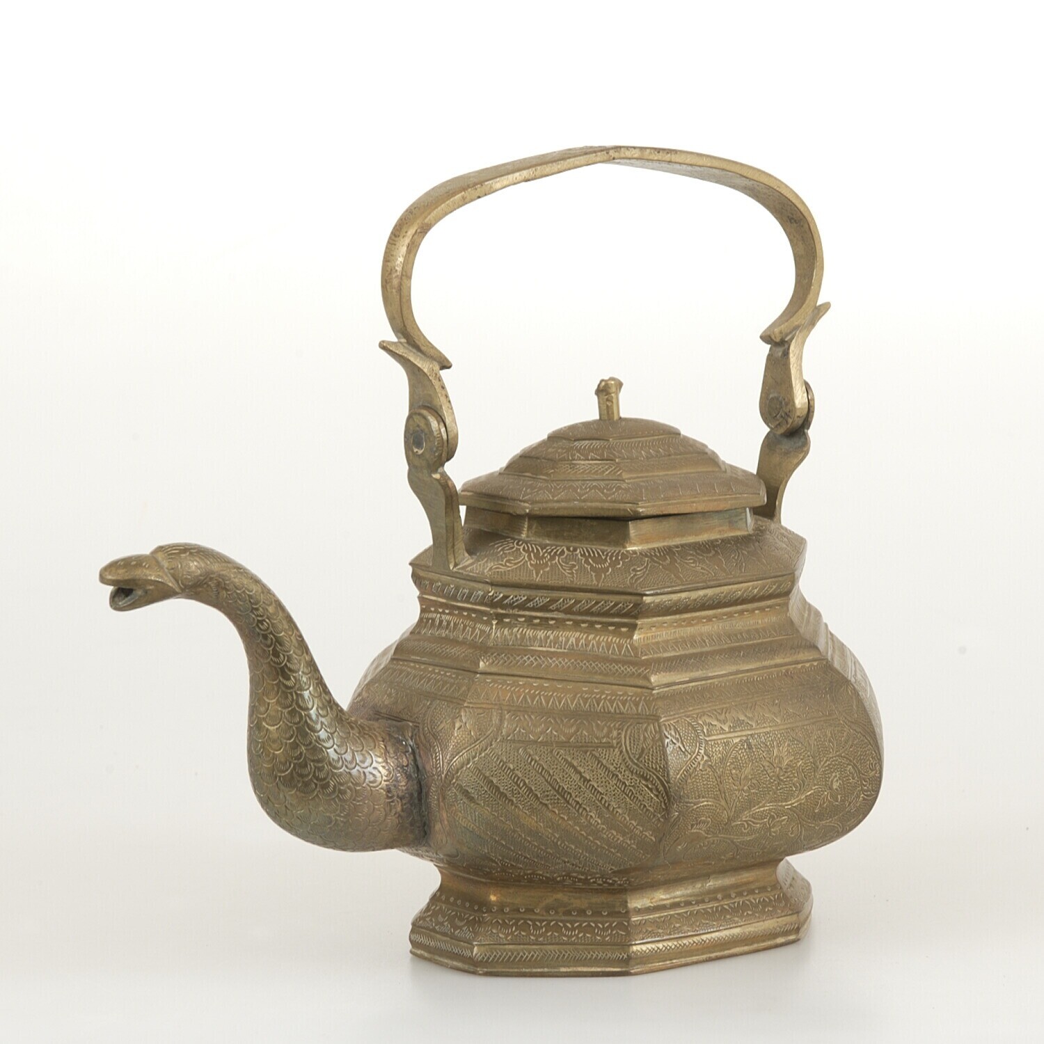 Messing kruik met afbeelding van Arjuna tussen bloem...