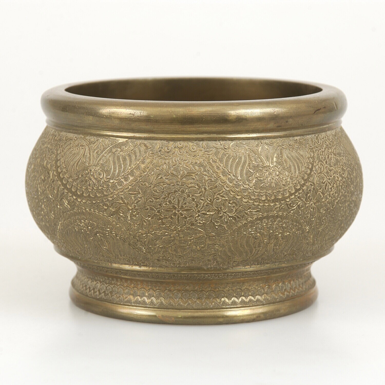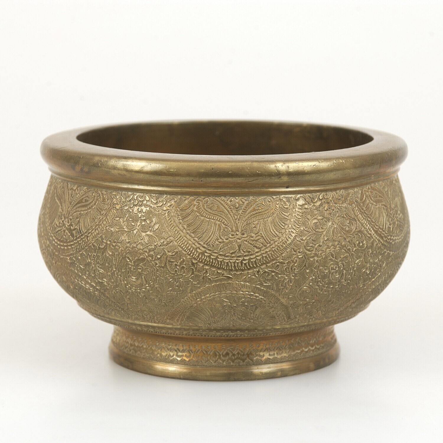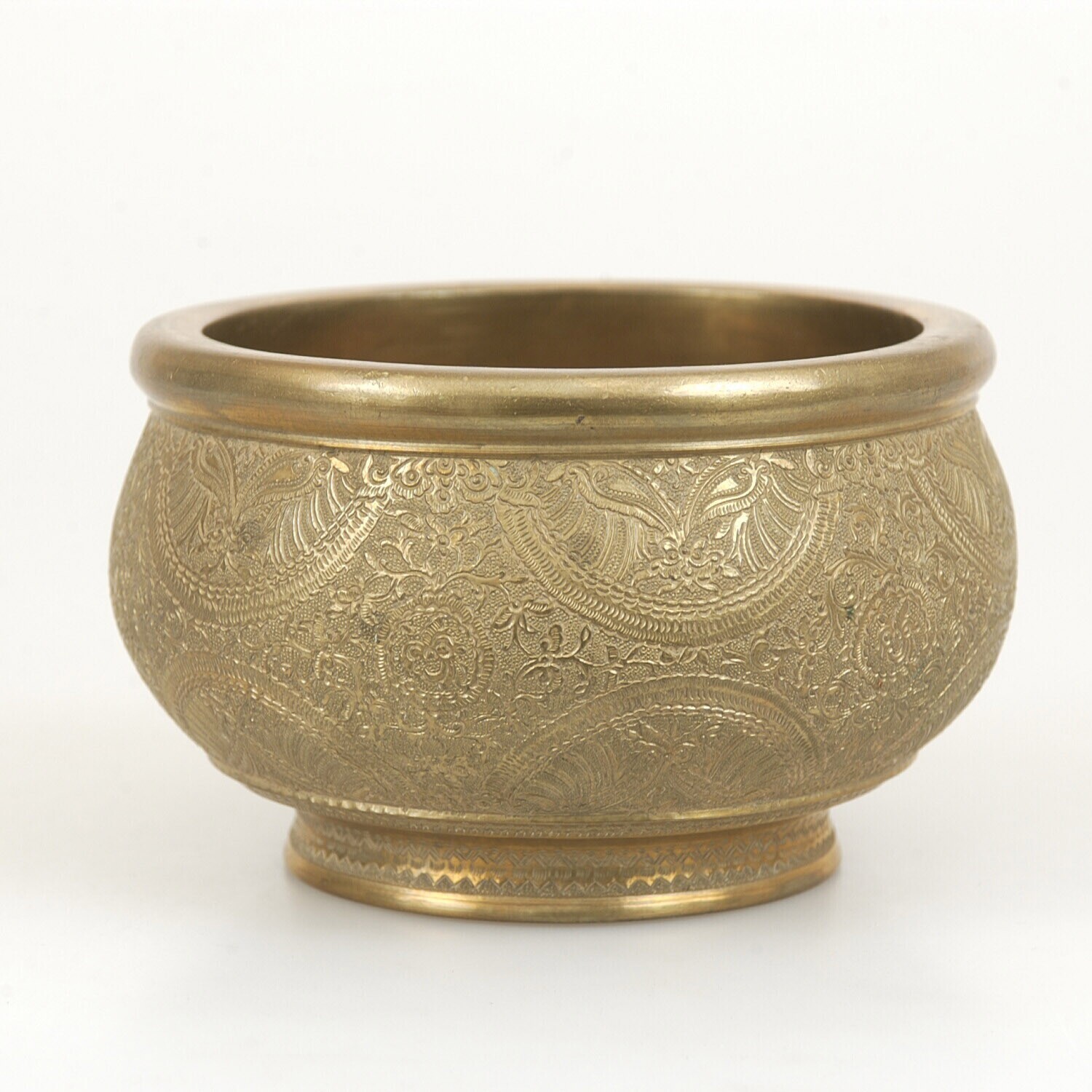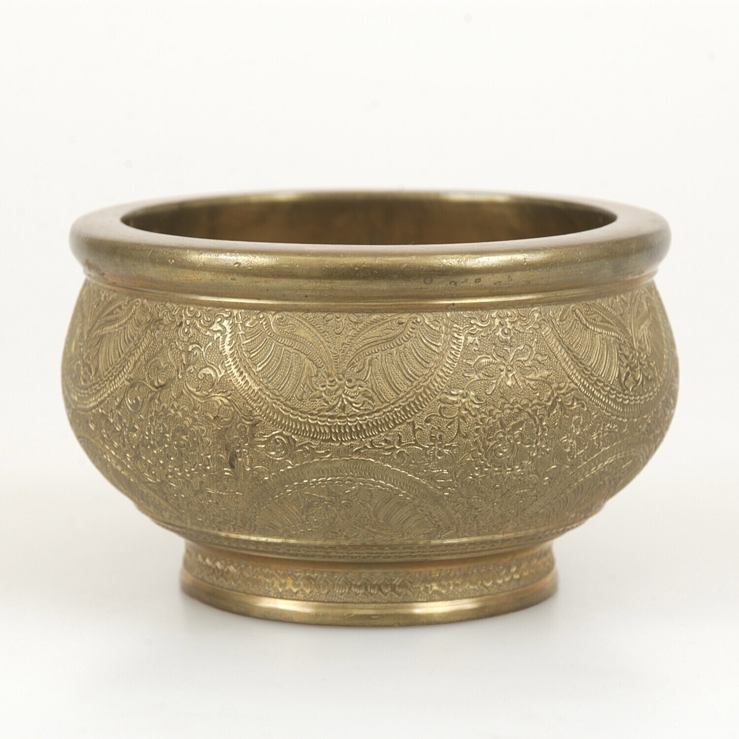 Messing kwispedoor versierd met bloemmotieven