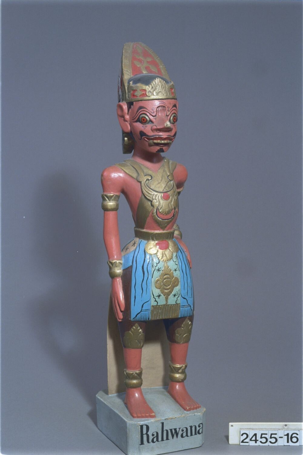 Beschilderd houten beeld op voetstuk voorstellende R...