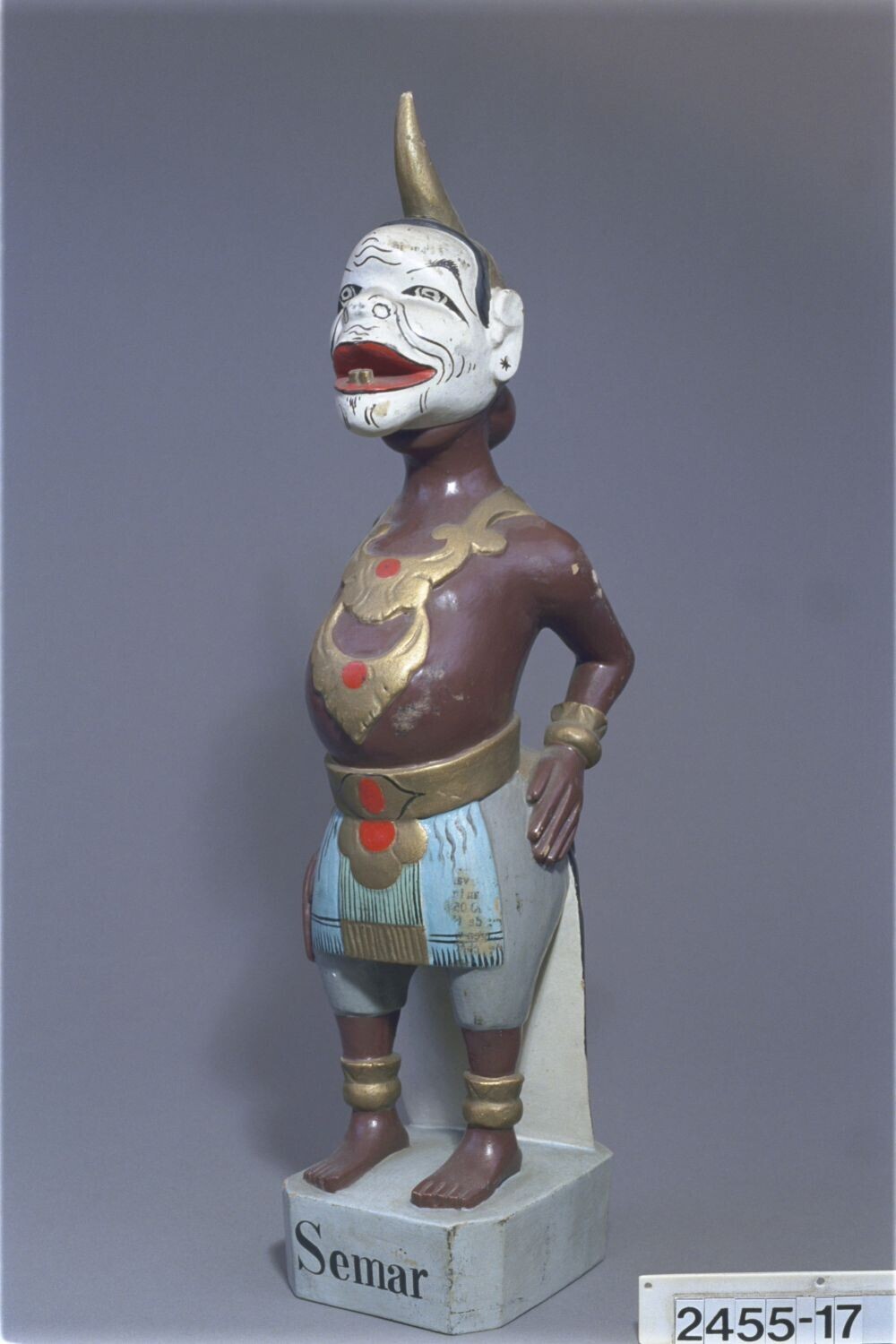 Beschilderd houten beeld op voetstuk voorstellende A...