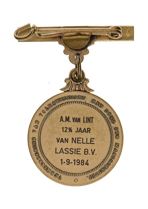 Goudkleurige penning van de Nederlandsche Maatschapp...