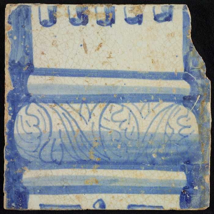 Tegel van schoorsteenpilaster, blauw op wit, deel va...