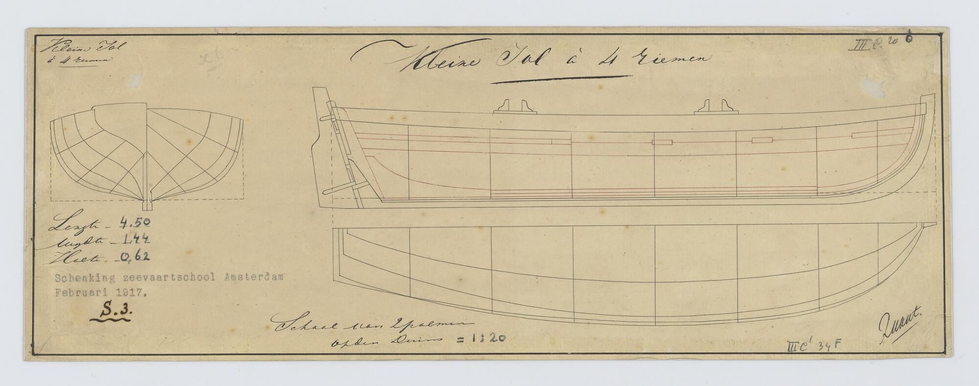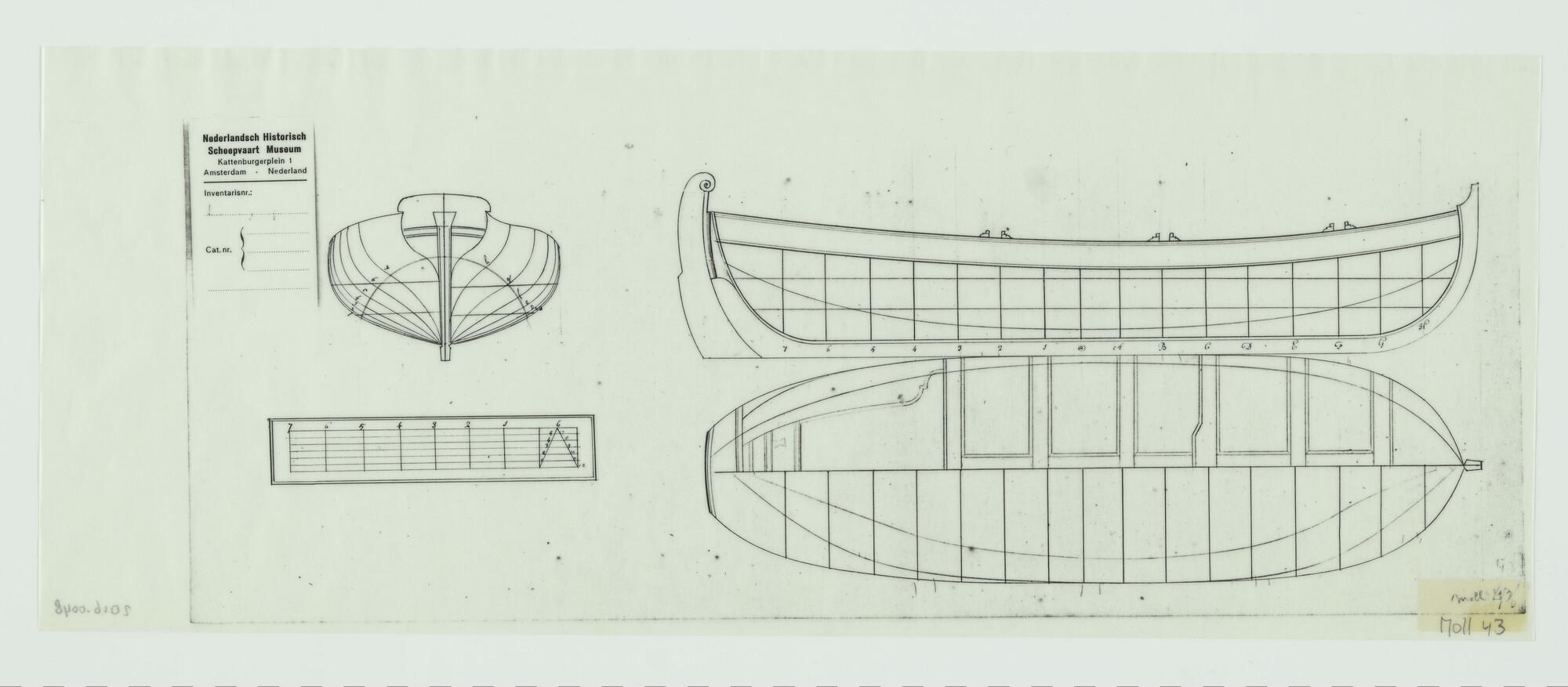 Lijnenplannen van jol met 4 riemen.
