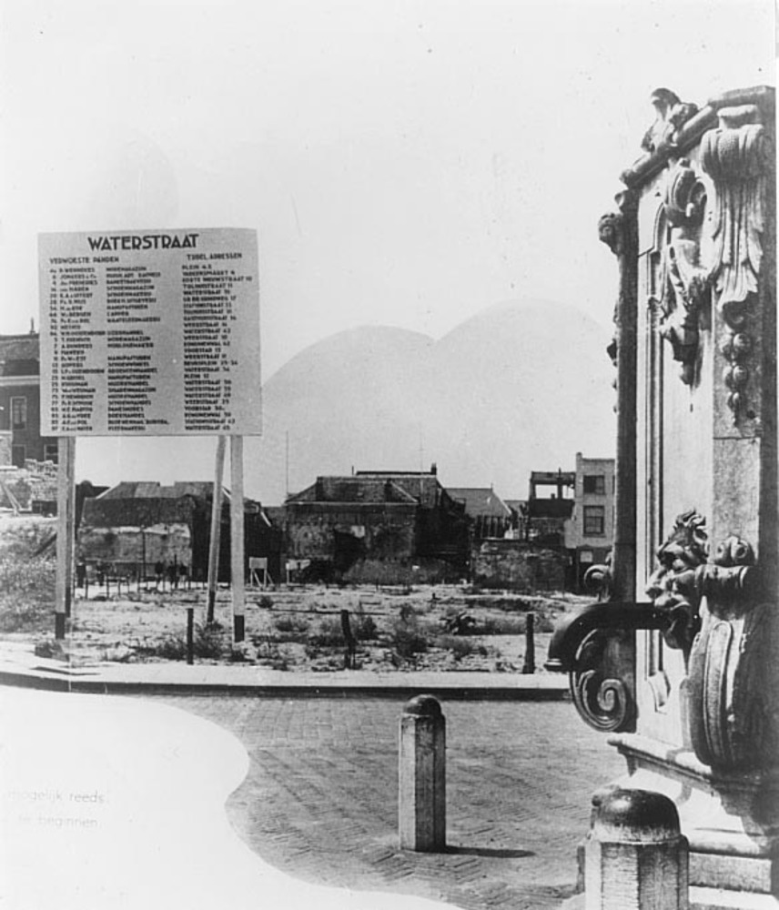 De Groenmarkt en Waterstraat in Tiel na de verwoesti...