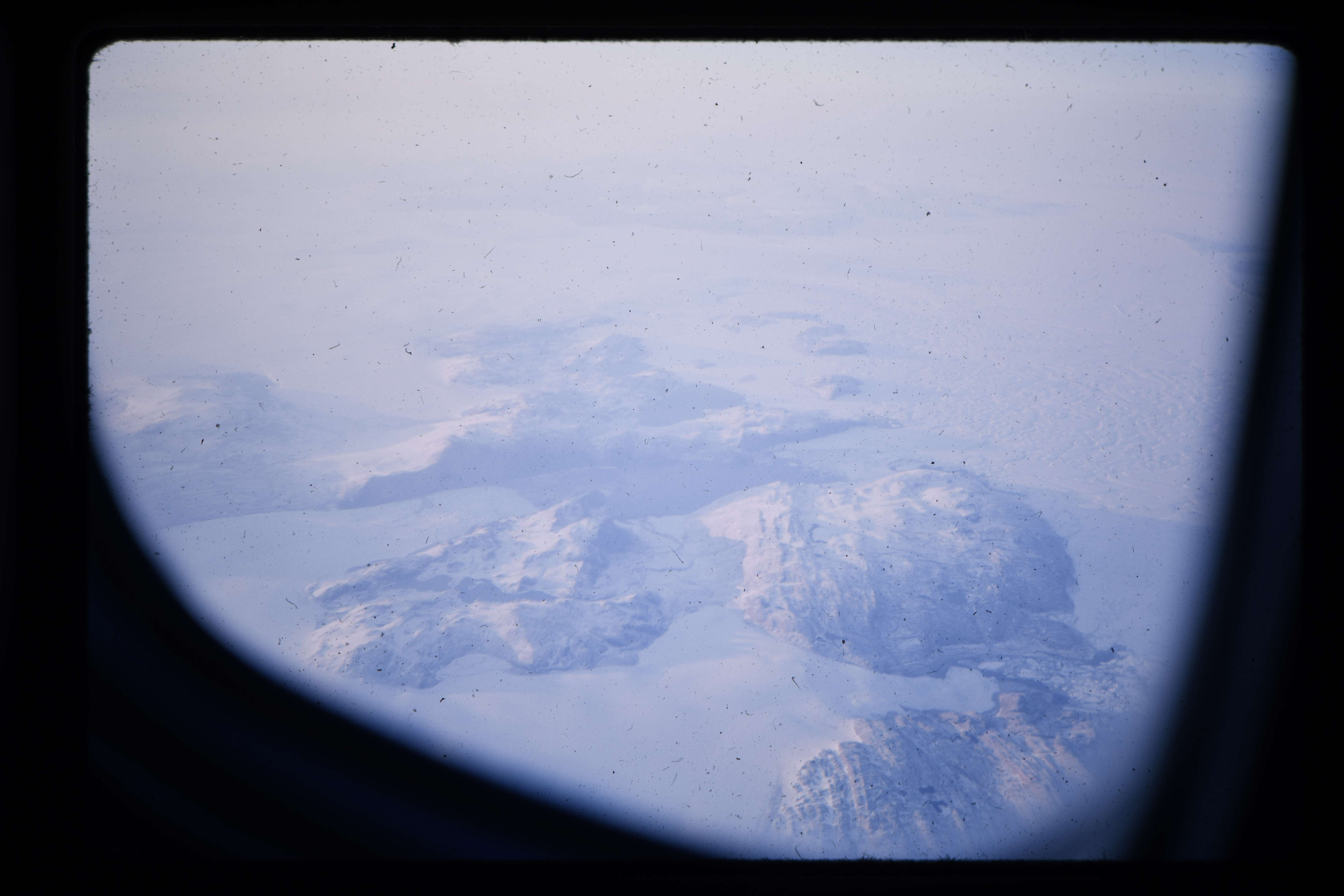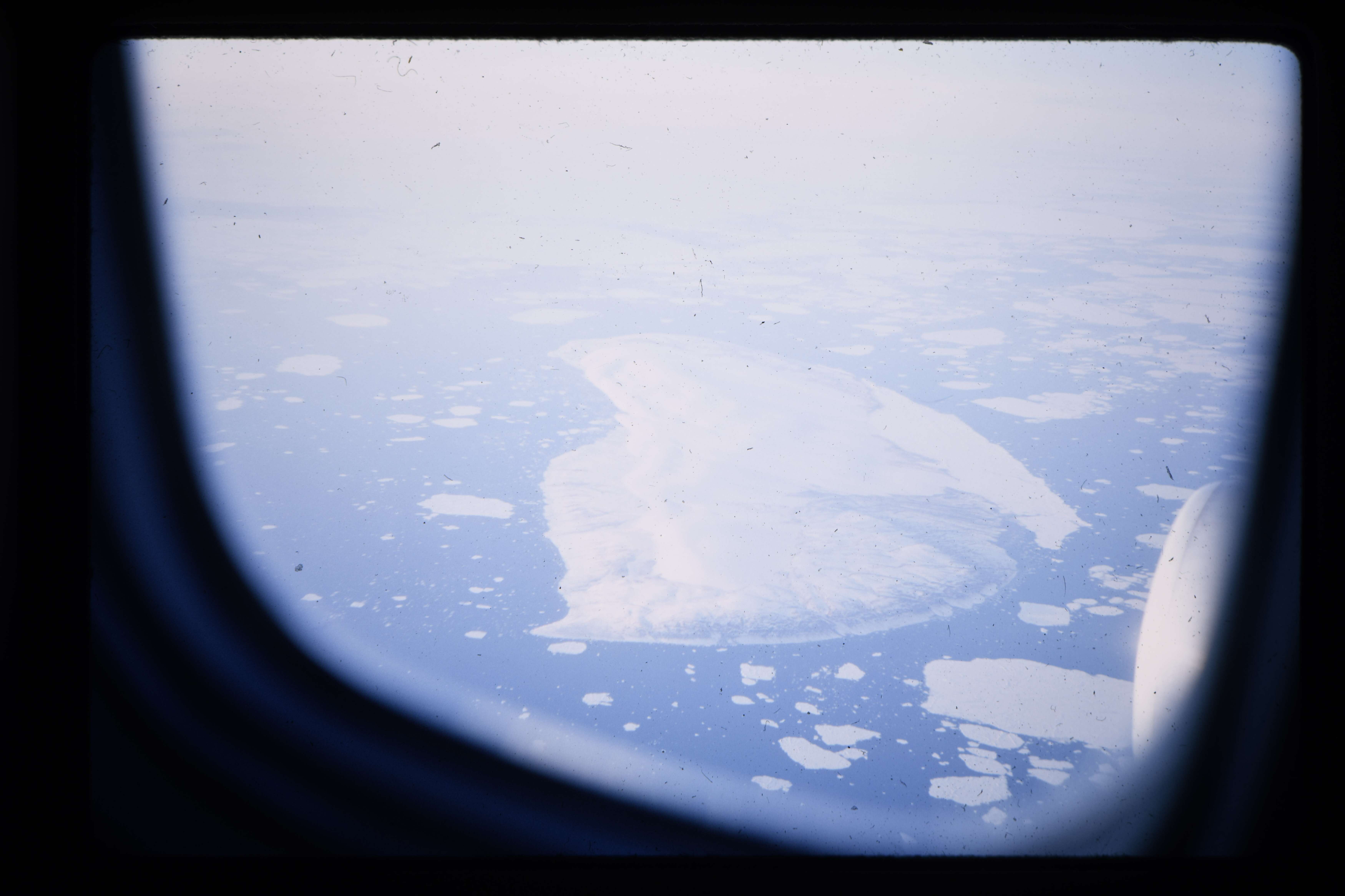 IJsbergen vanuit het vliegtuig over de pool, route A...