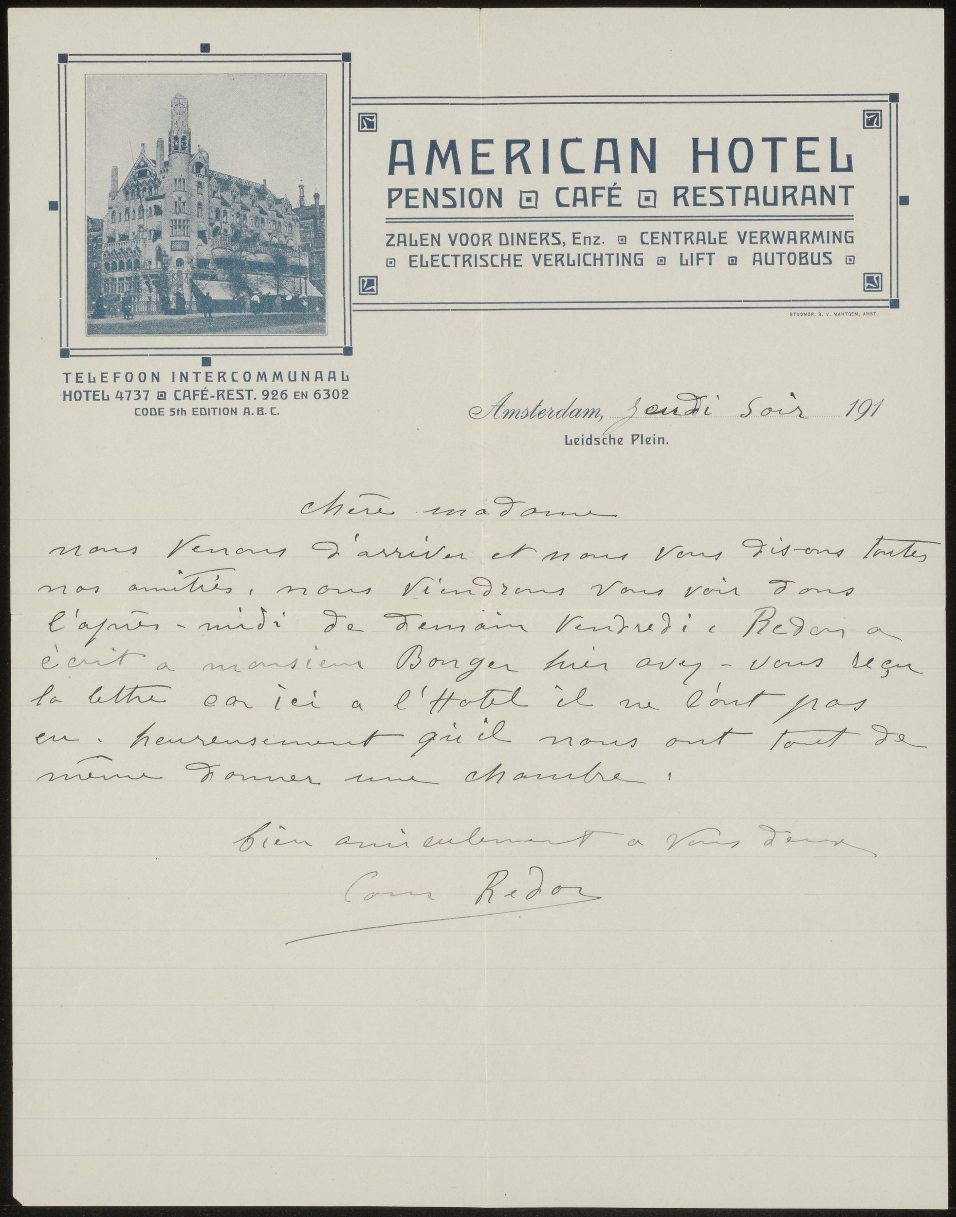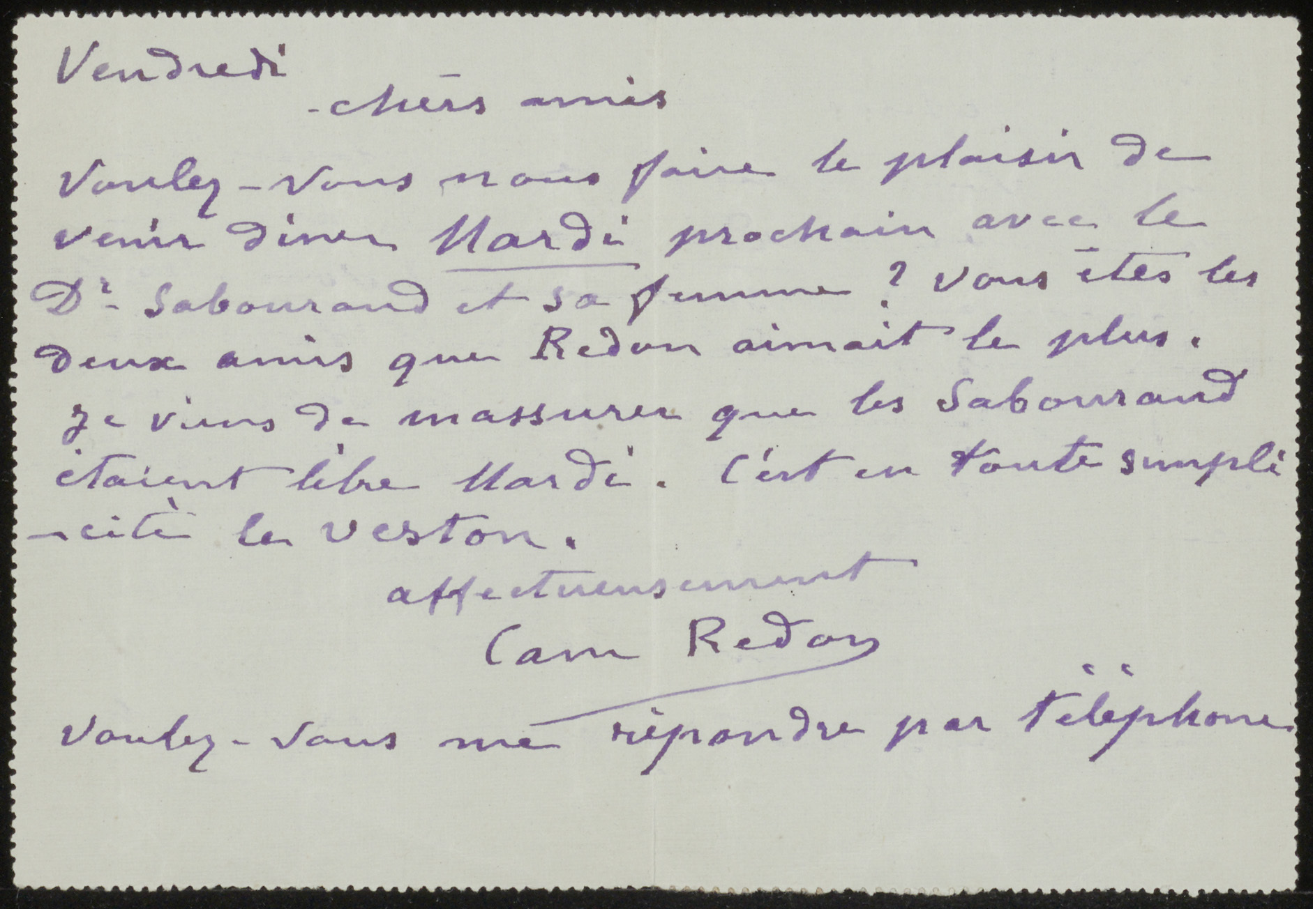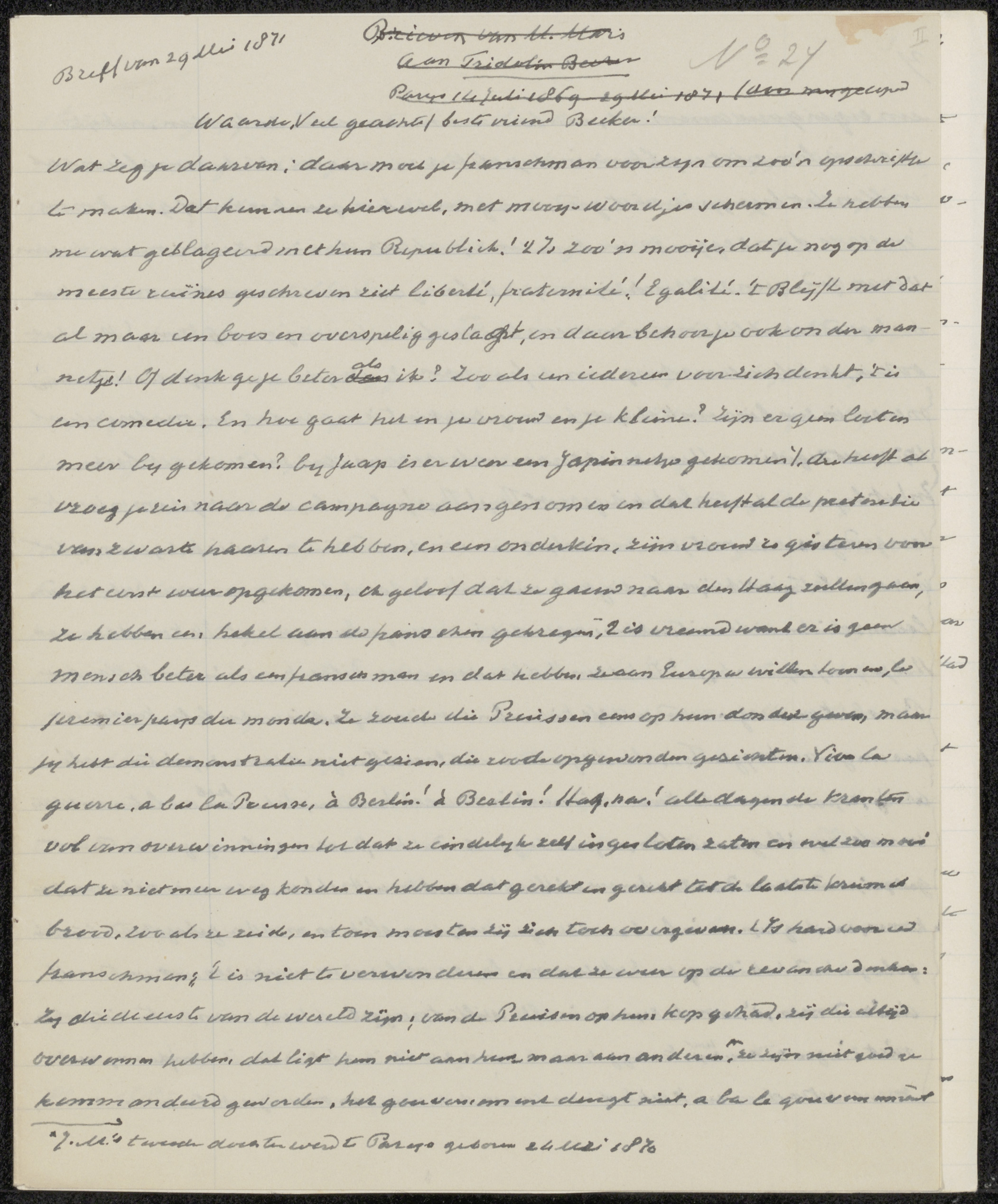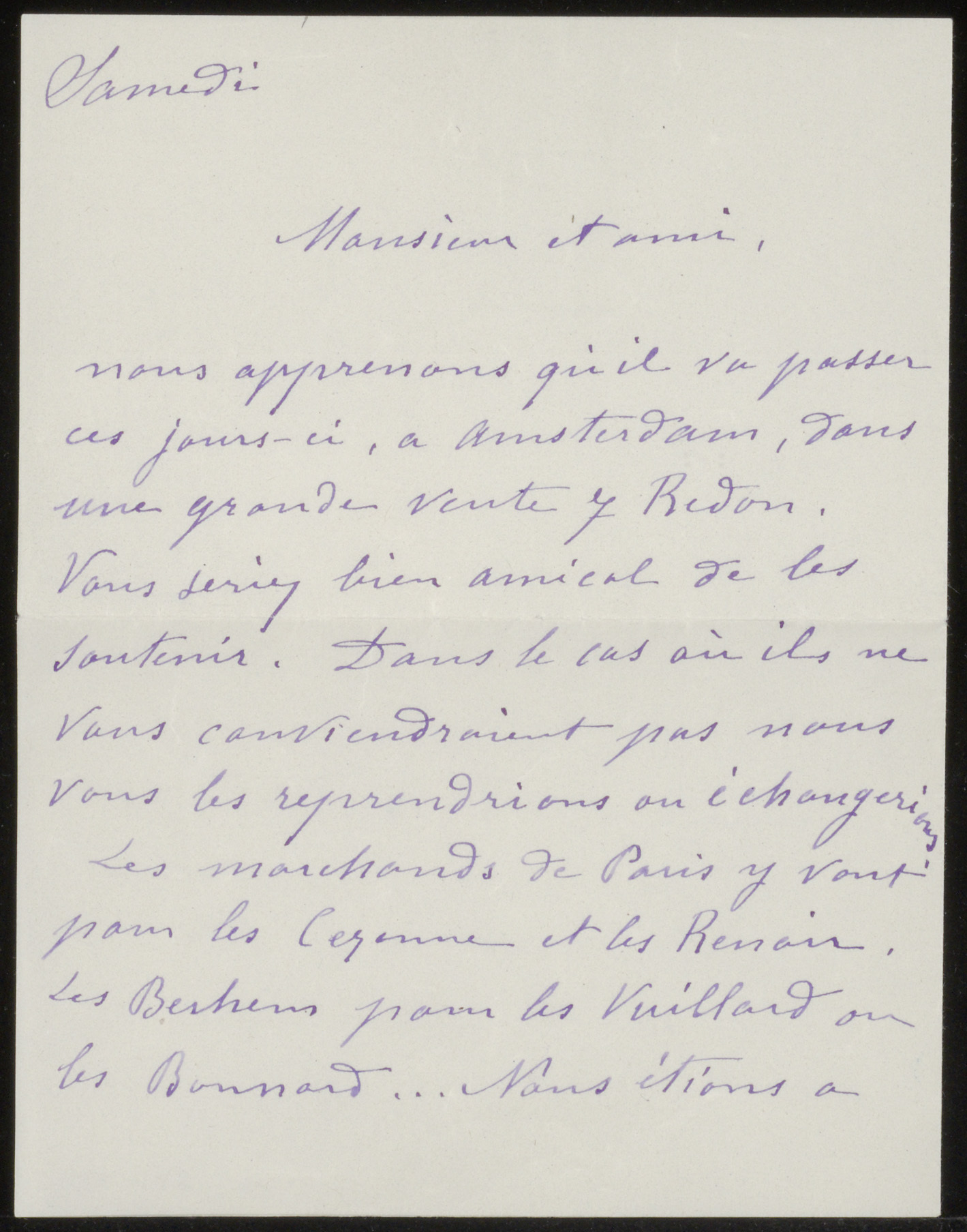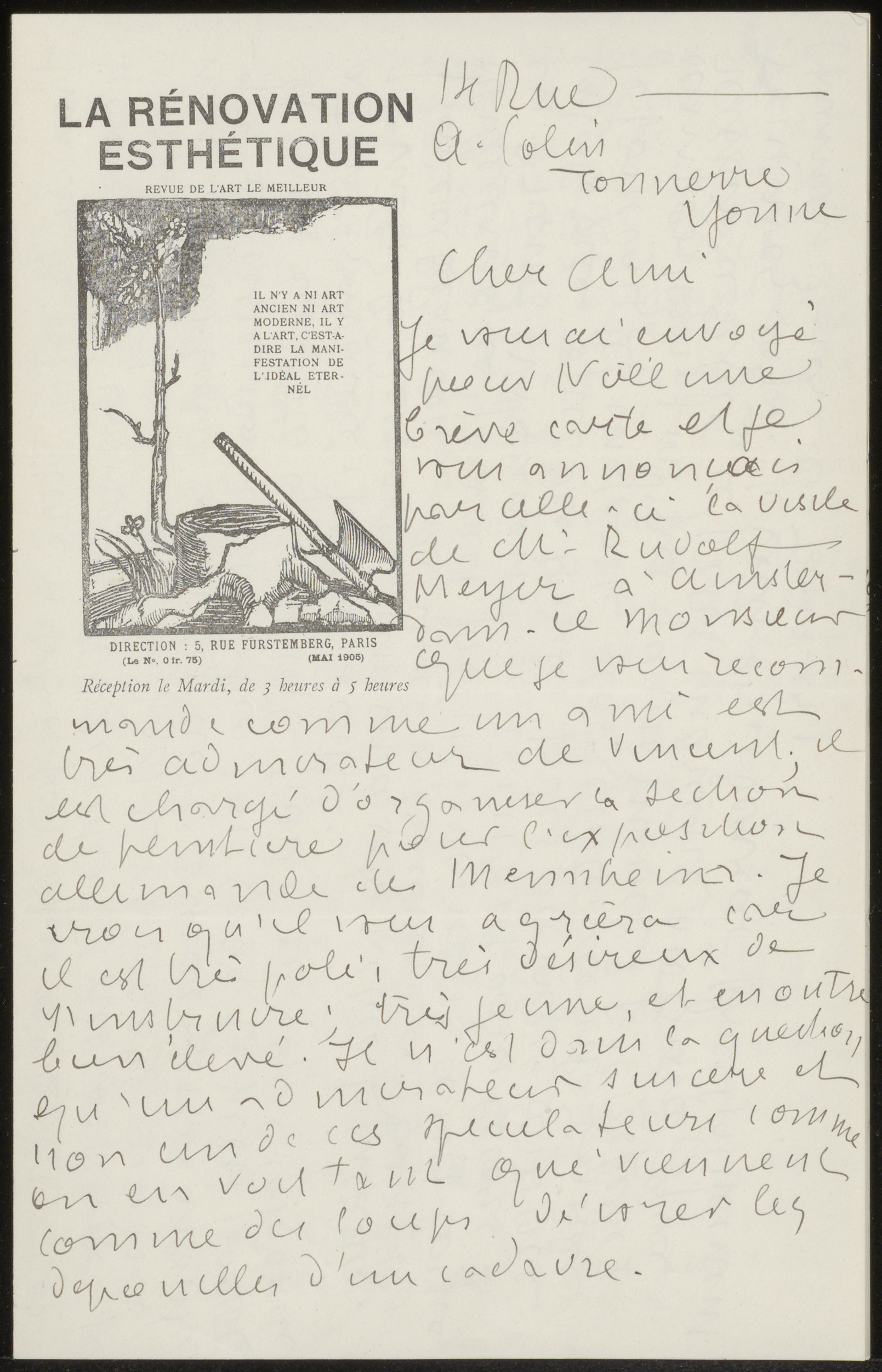 Brief aan Andries Bonger en Anne Marie Louise van de...