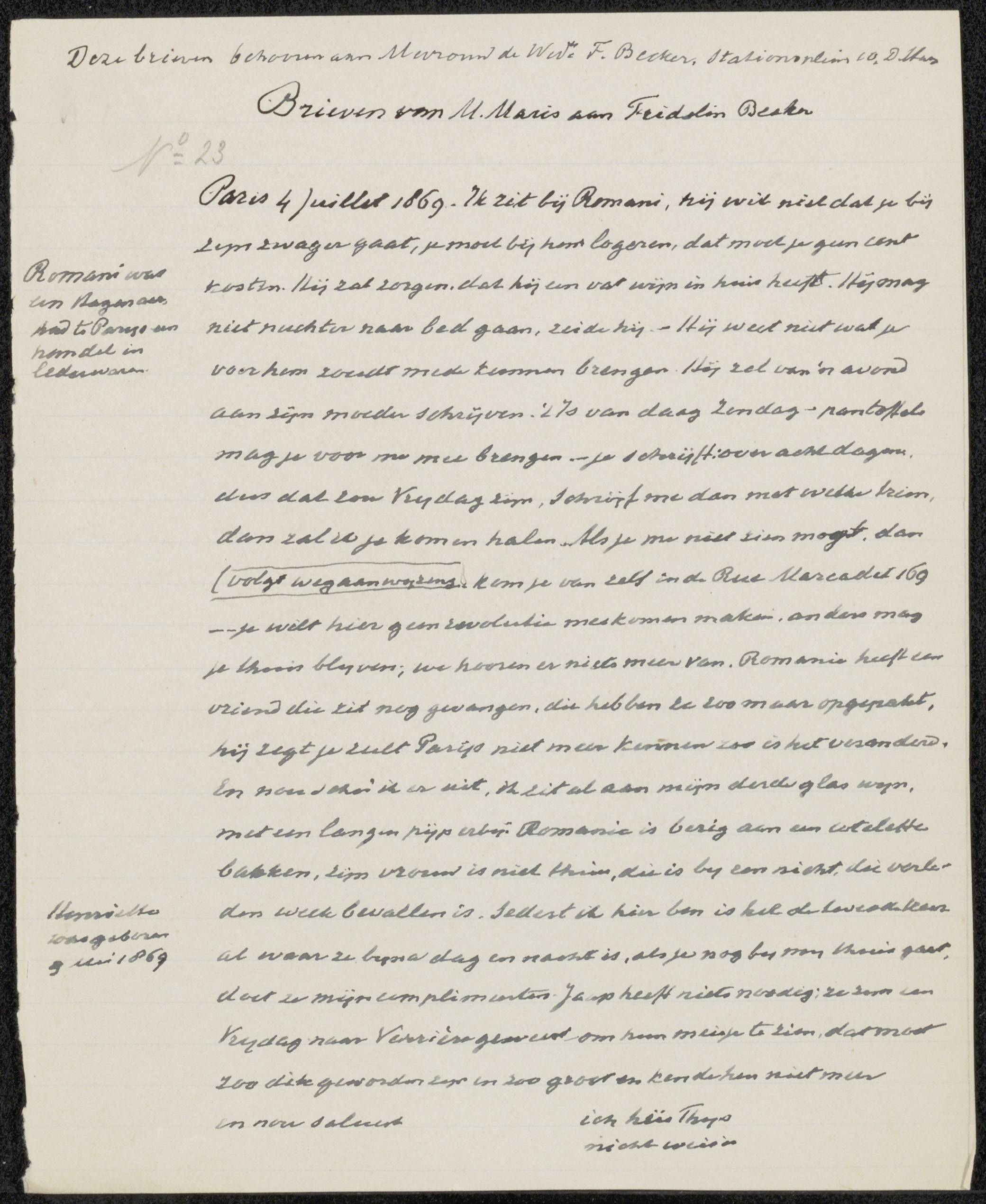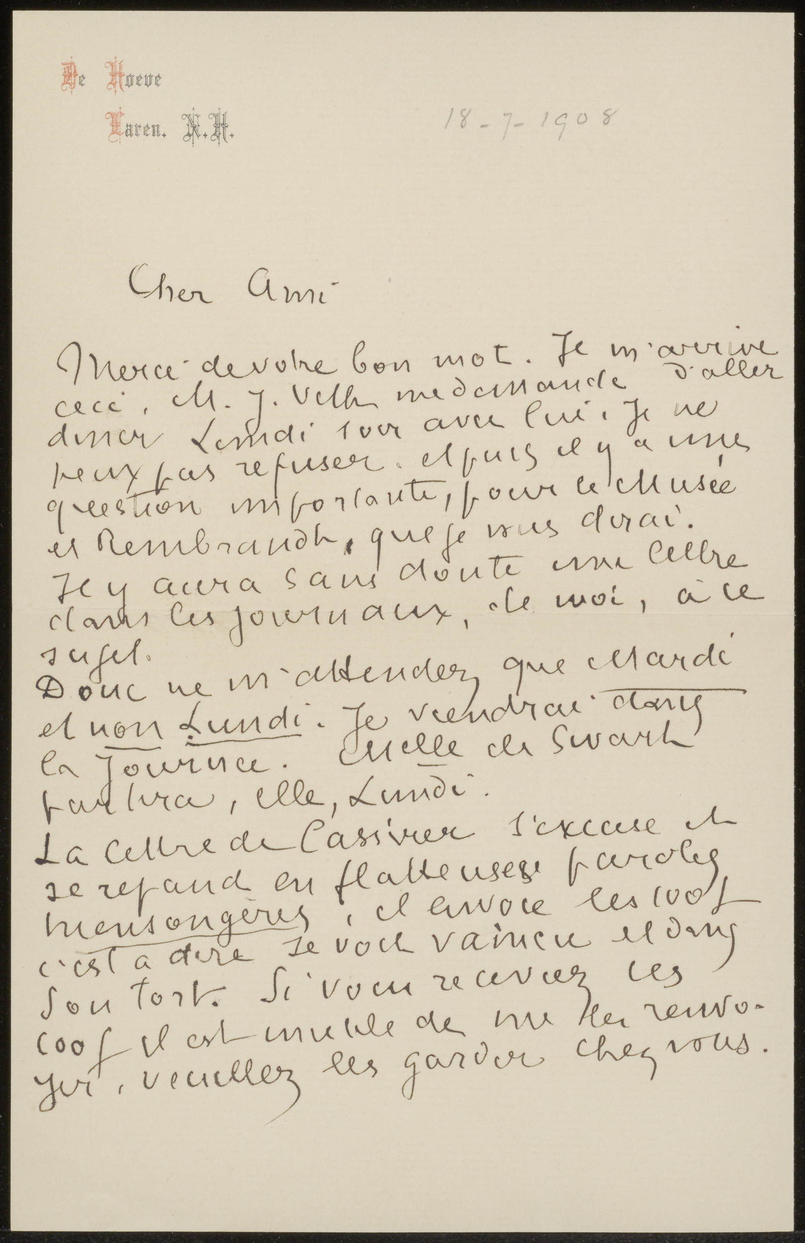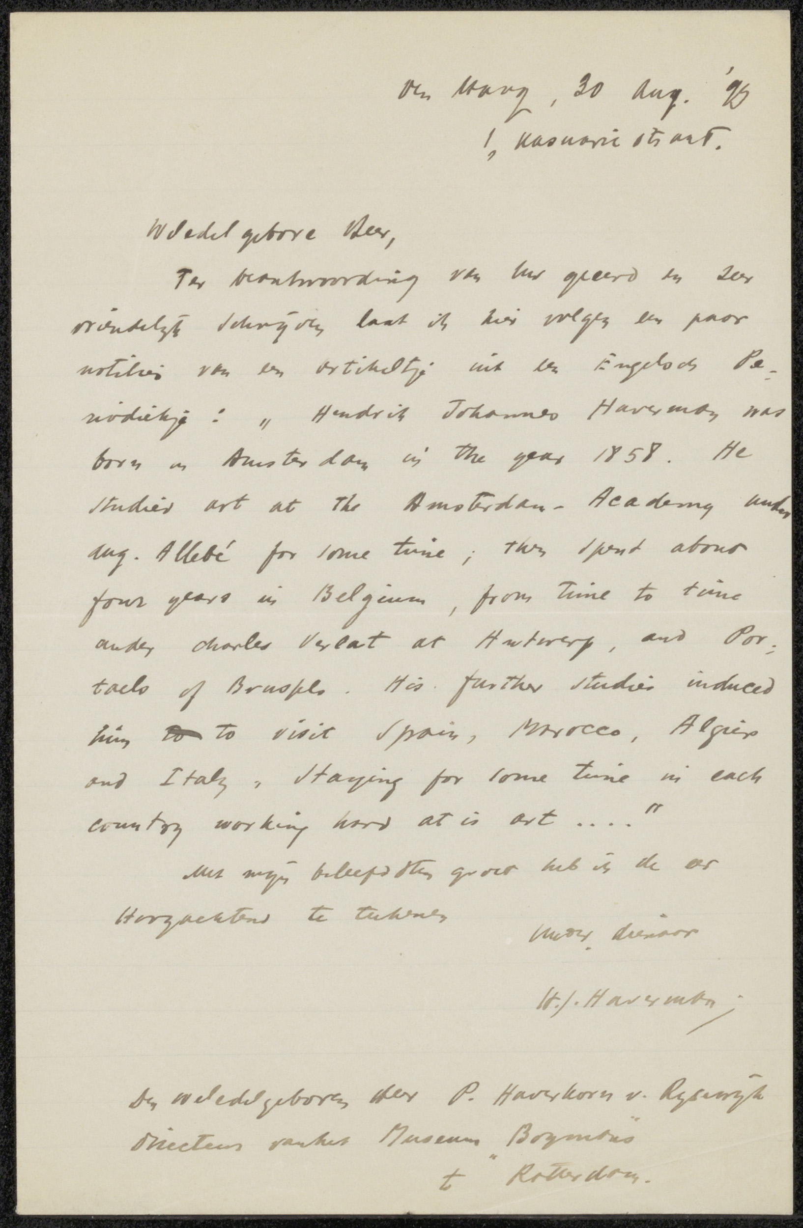 Geannoteerde transcriptie van een brief aan H.L. Ber...