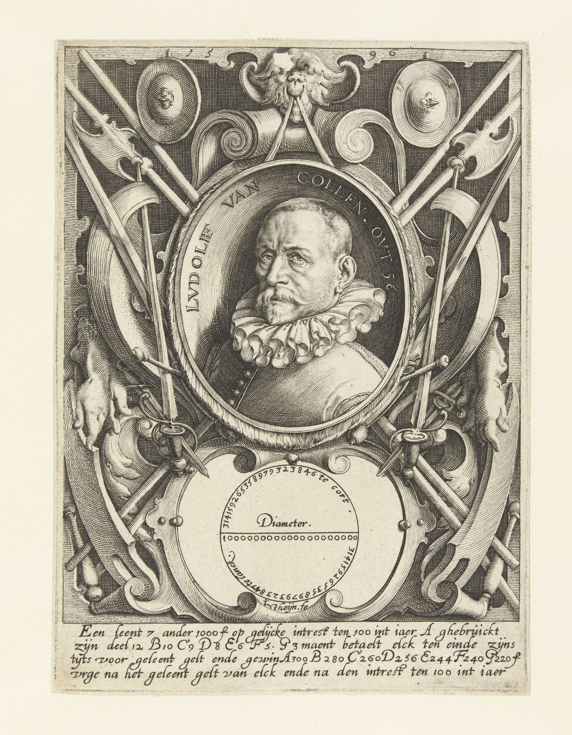 Portret van Ludolf van Ceulen op 56-jarige leeftijd