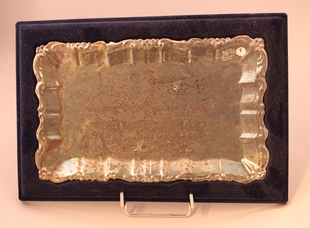 Wandbordje Zilver Spanje 29-4-2004, geschenk Koninkl...