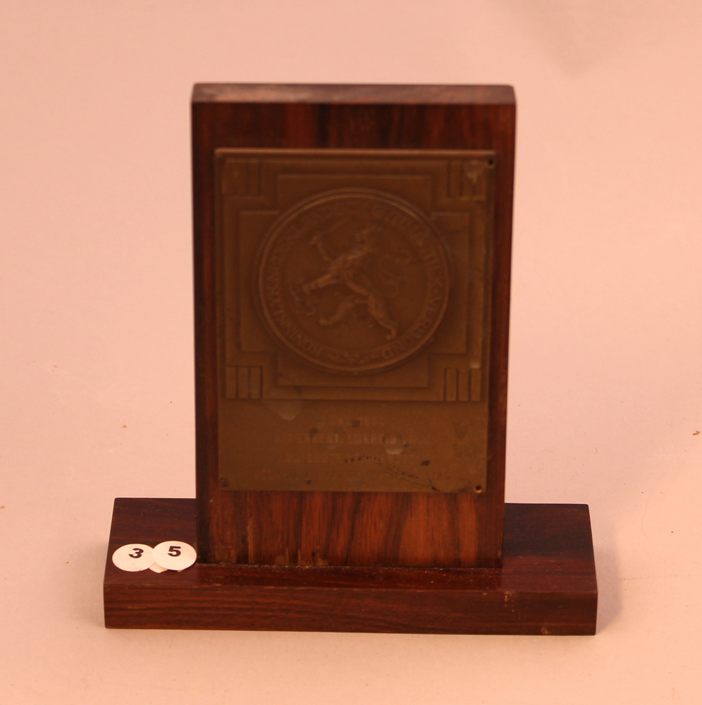 Plaquette op standaard "Uit erkentelijkheid voor uw ...