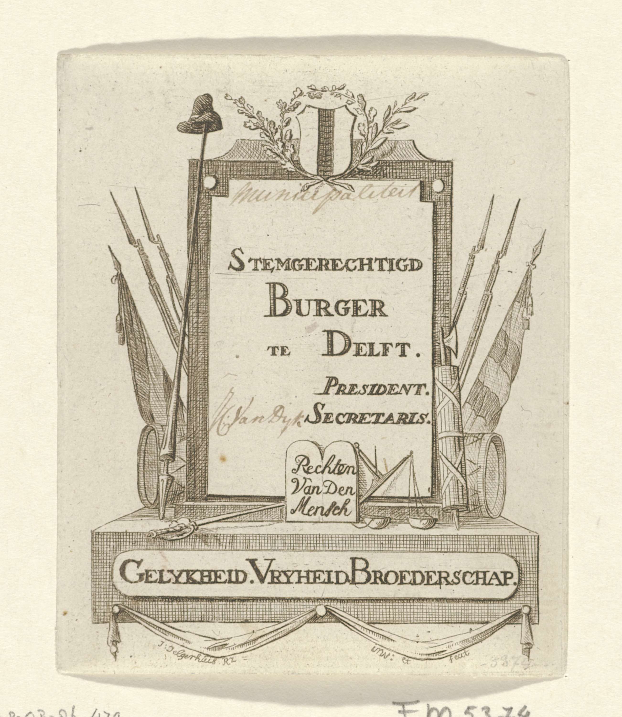 Bewijs van stemgerechtigd burgerschap van Delft, 1795