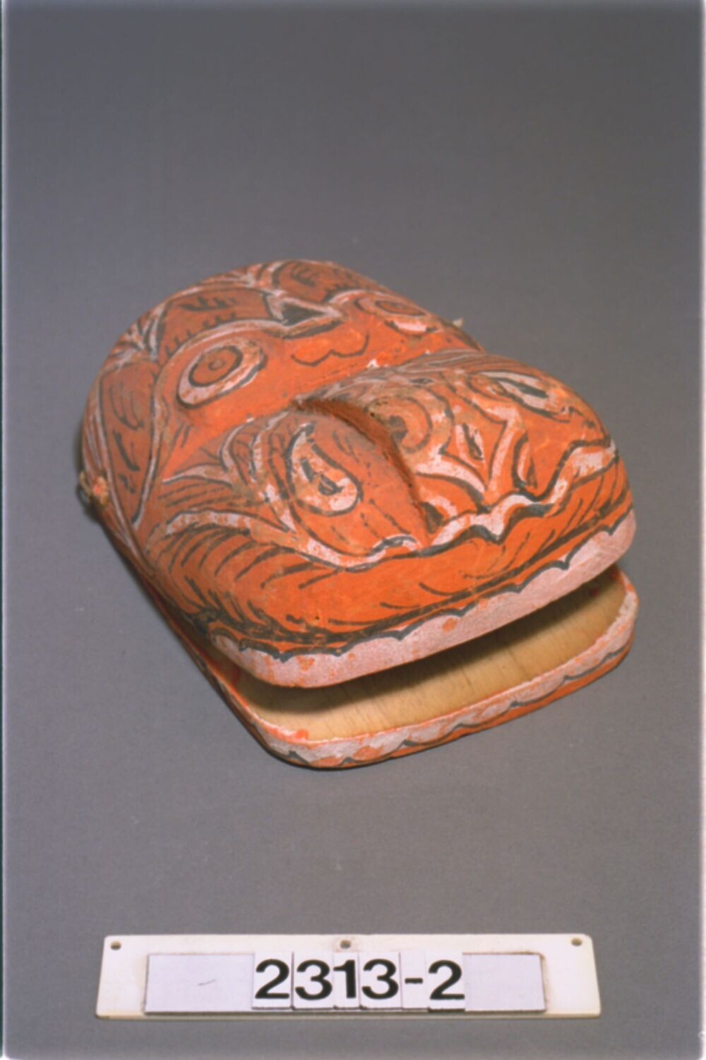 Kalkstenen gietvorm met ornament van een nagafiguur,...