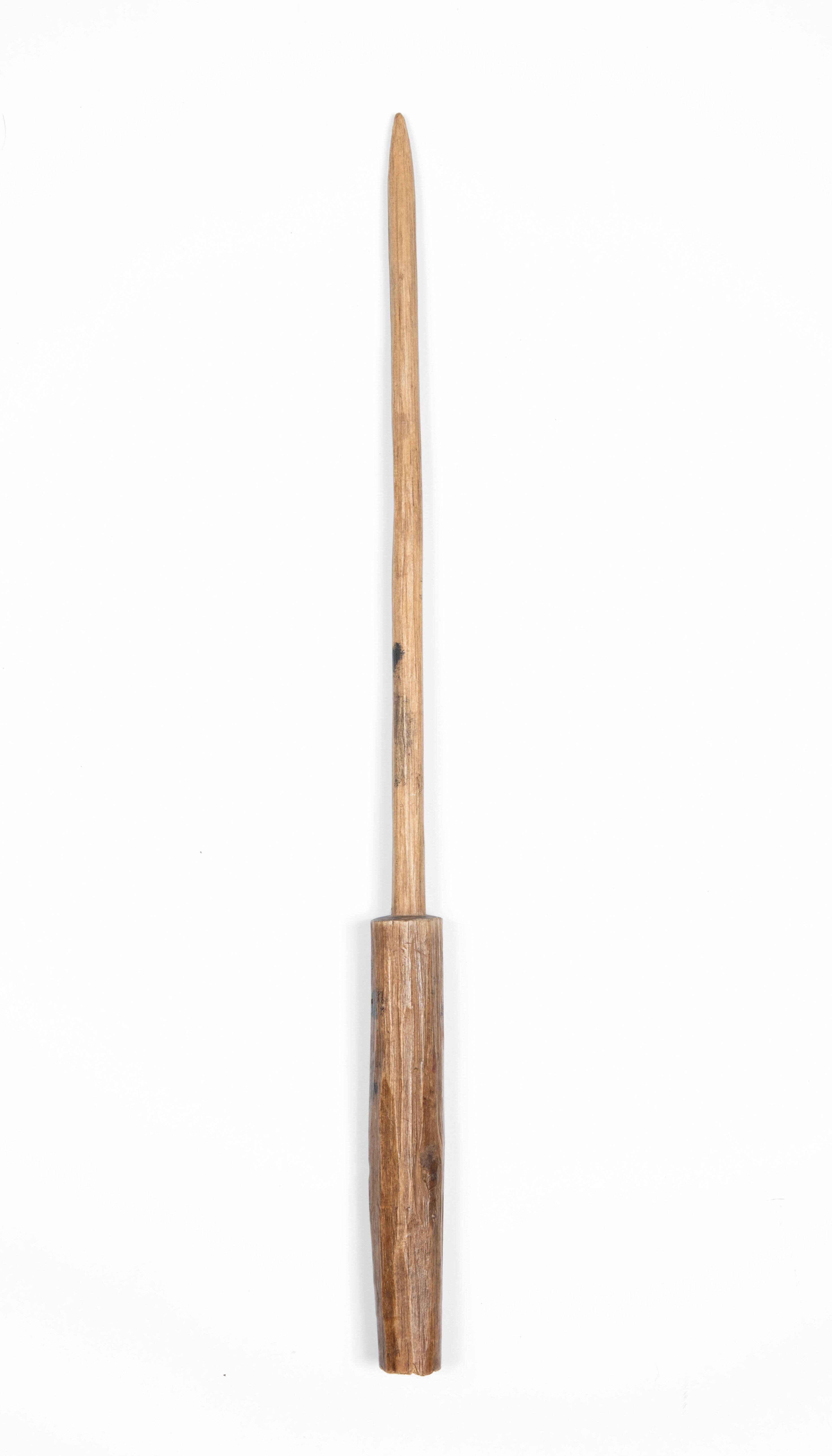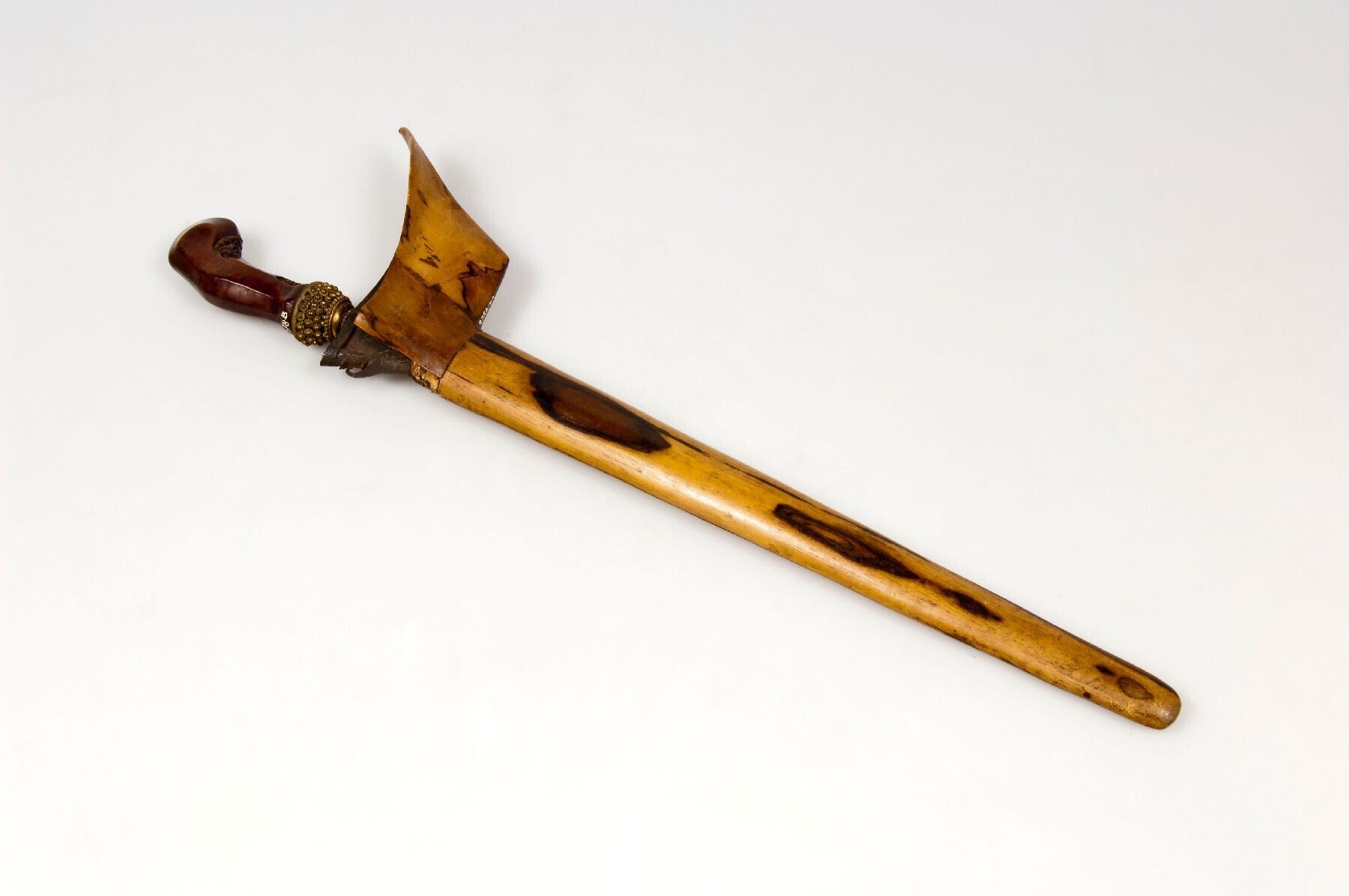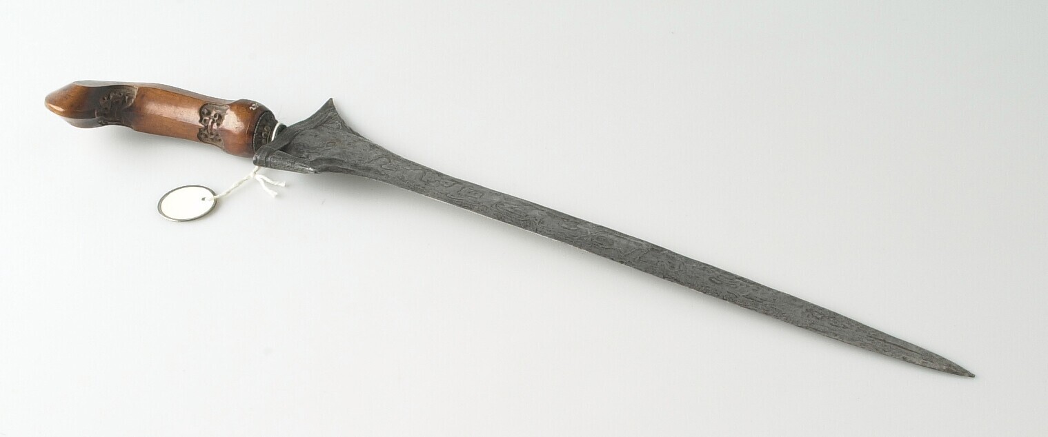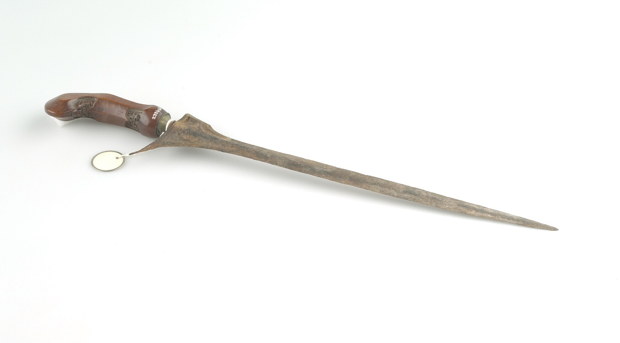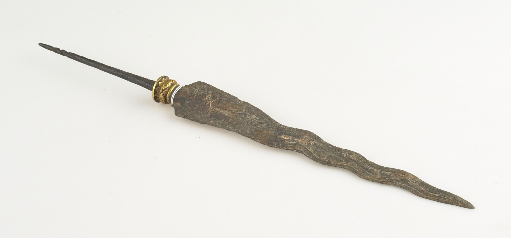 Krisvormige metalen lanspunt voorzien van koper en i...
