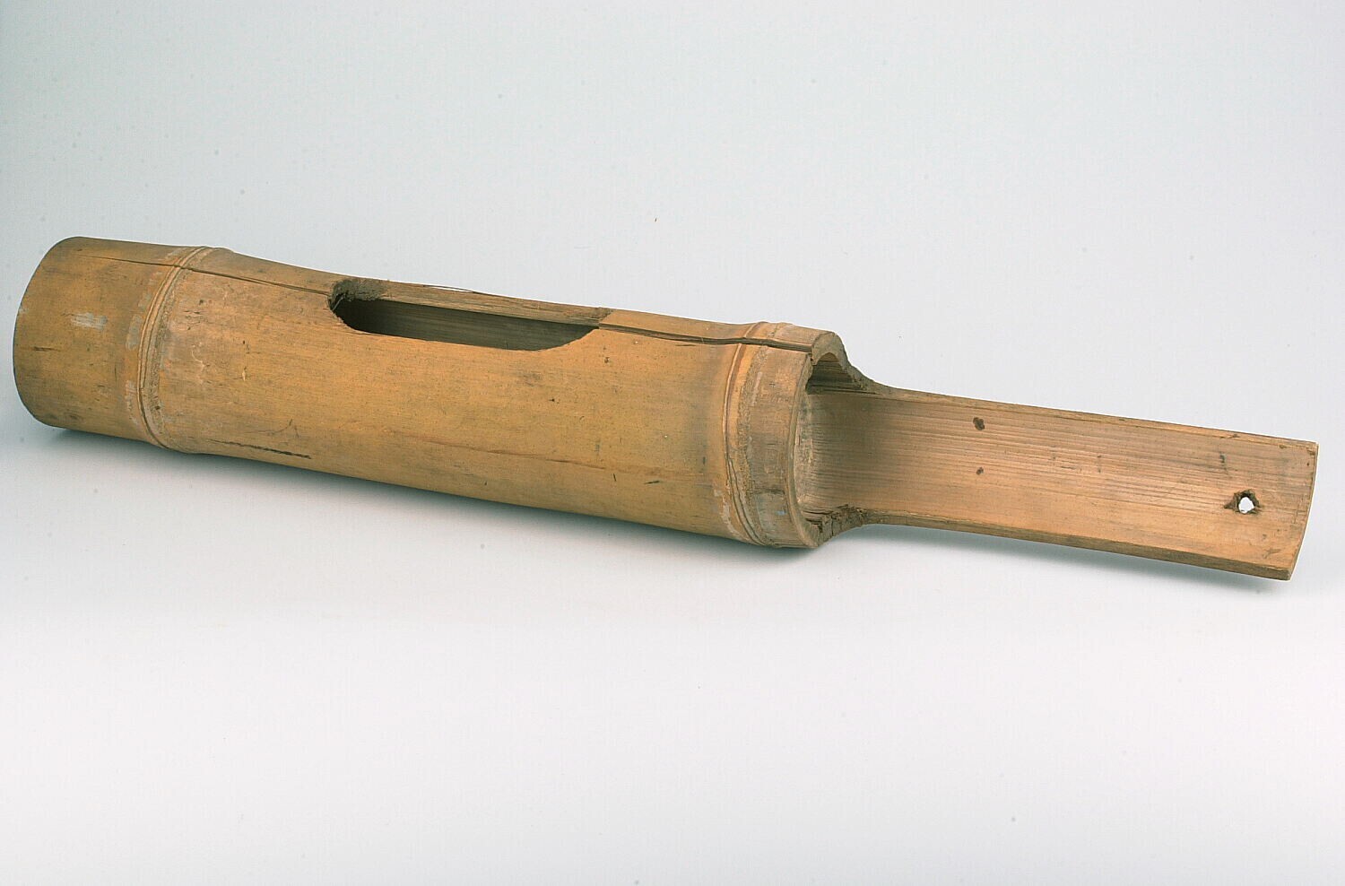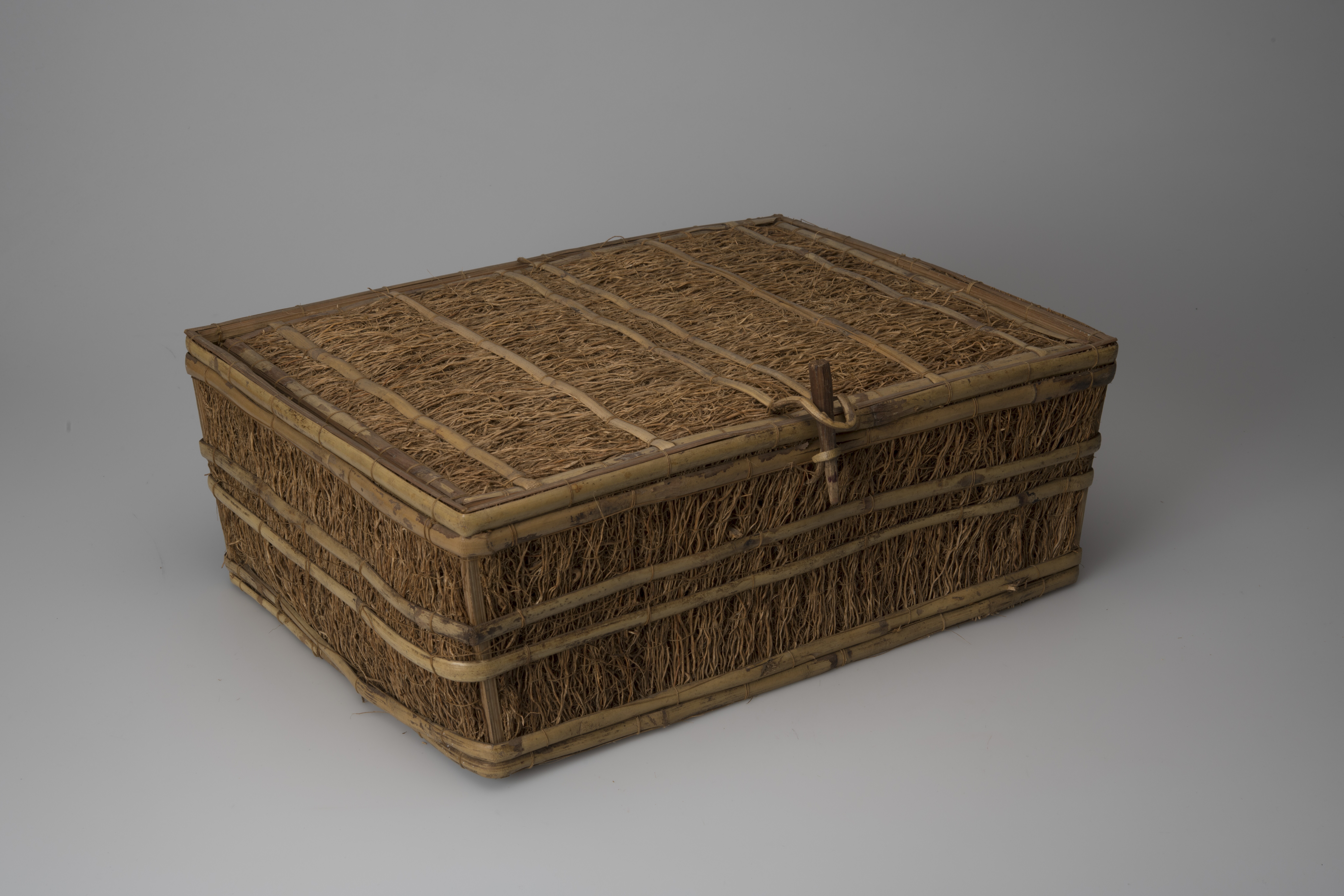 Gevlochten schepmand van bamboe voor het verwijderen...