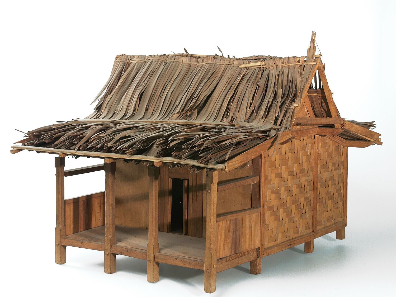Schaalmodel van een aardewerken vergiet met bijbehor...