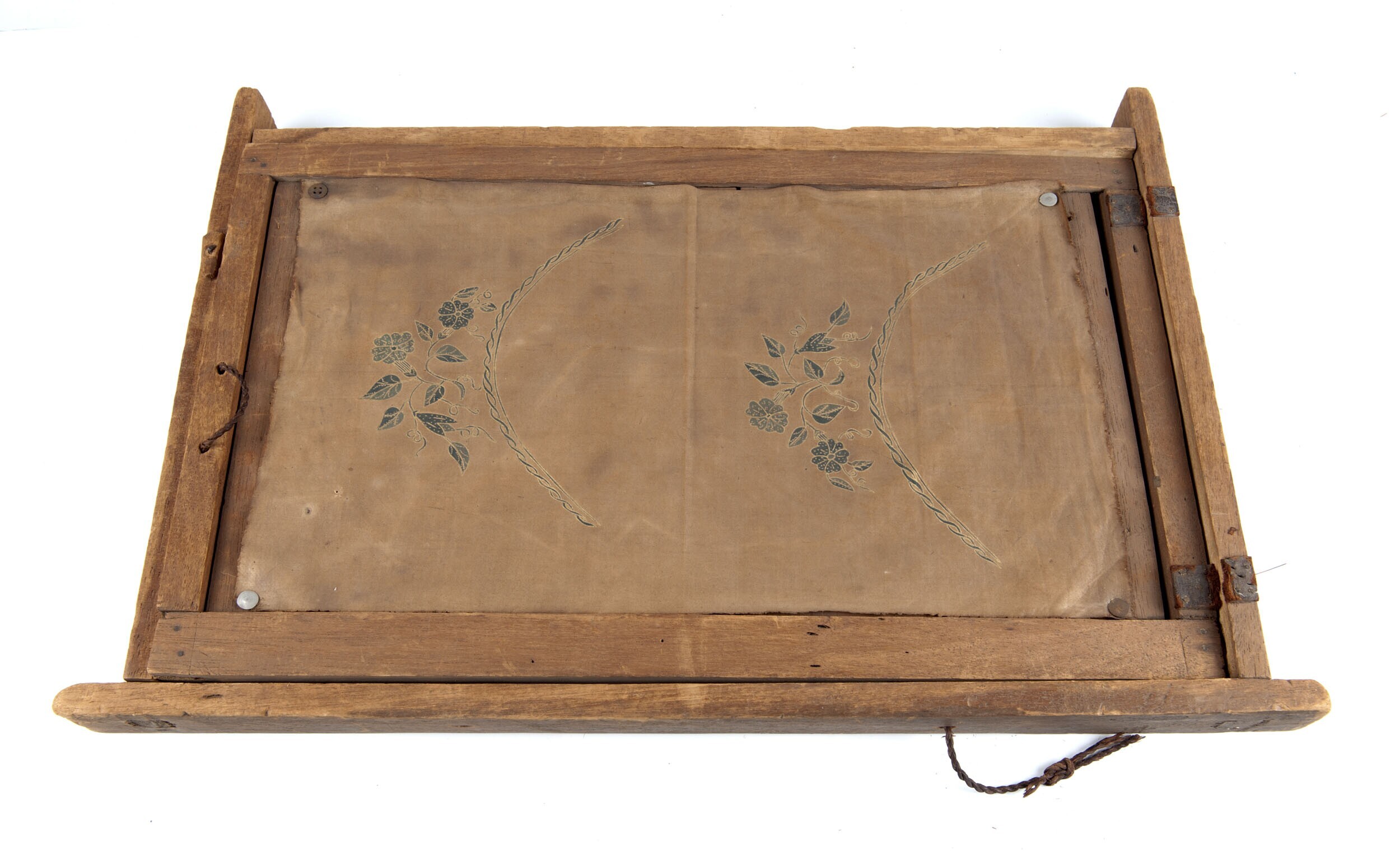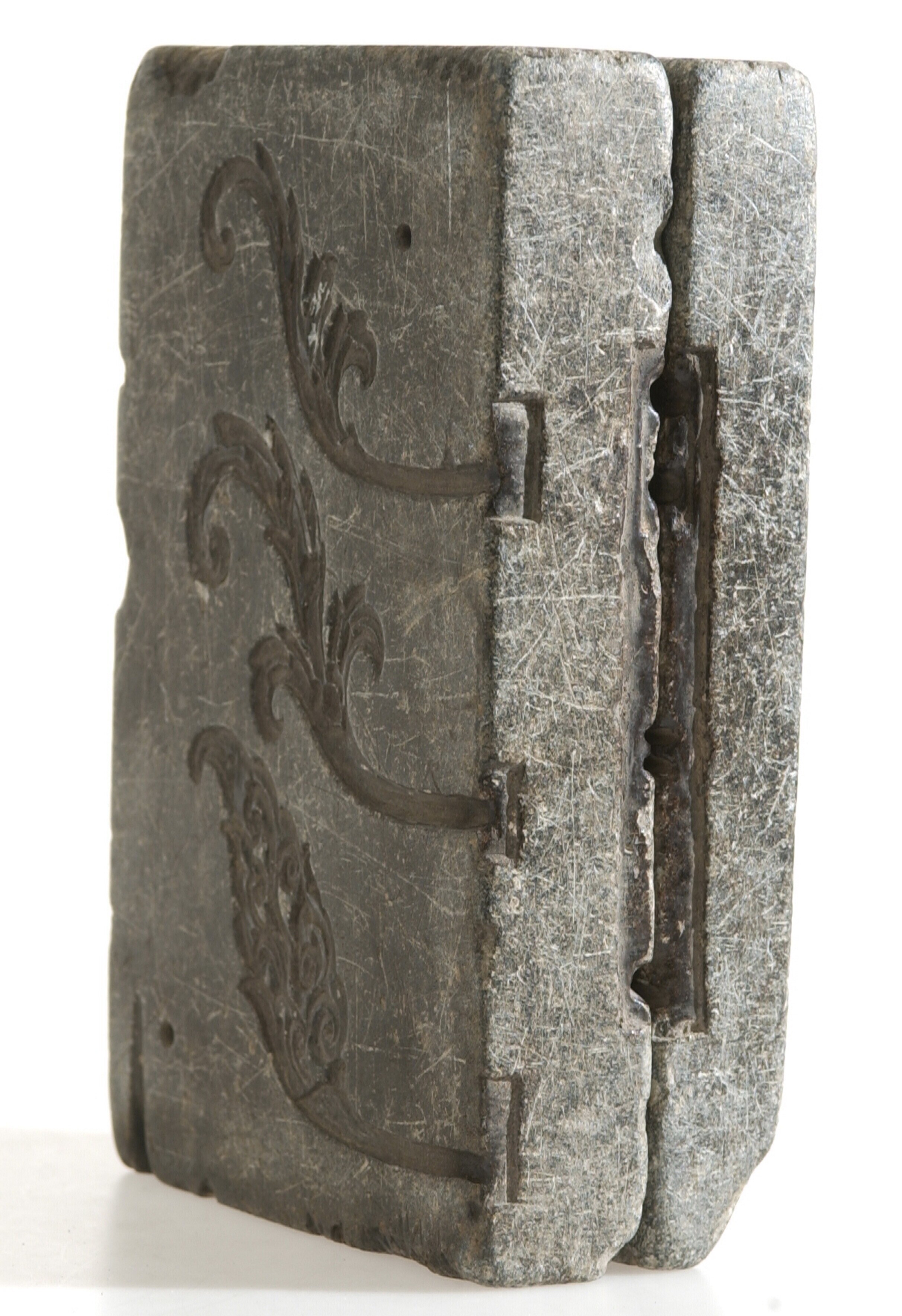 Kalkstenen gietvorm met ornament van bladkrullen en ...