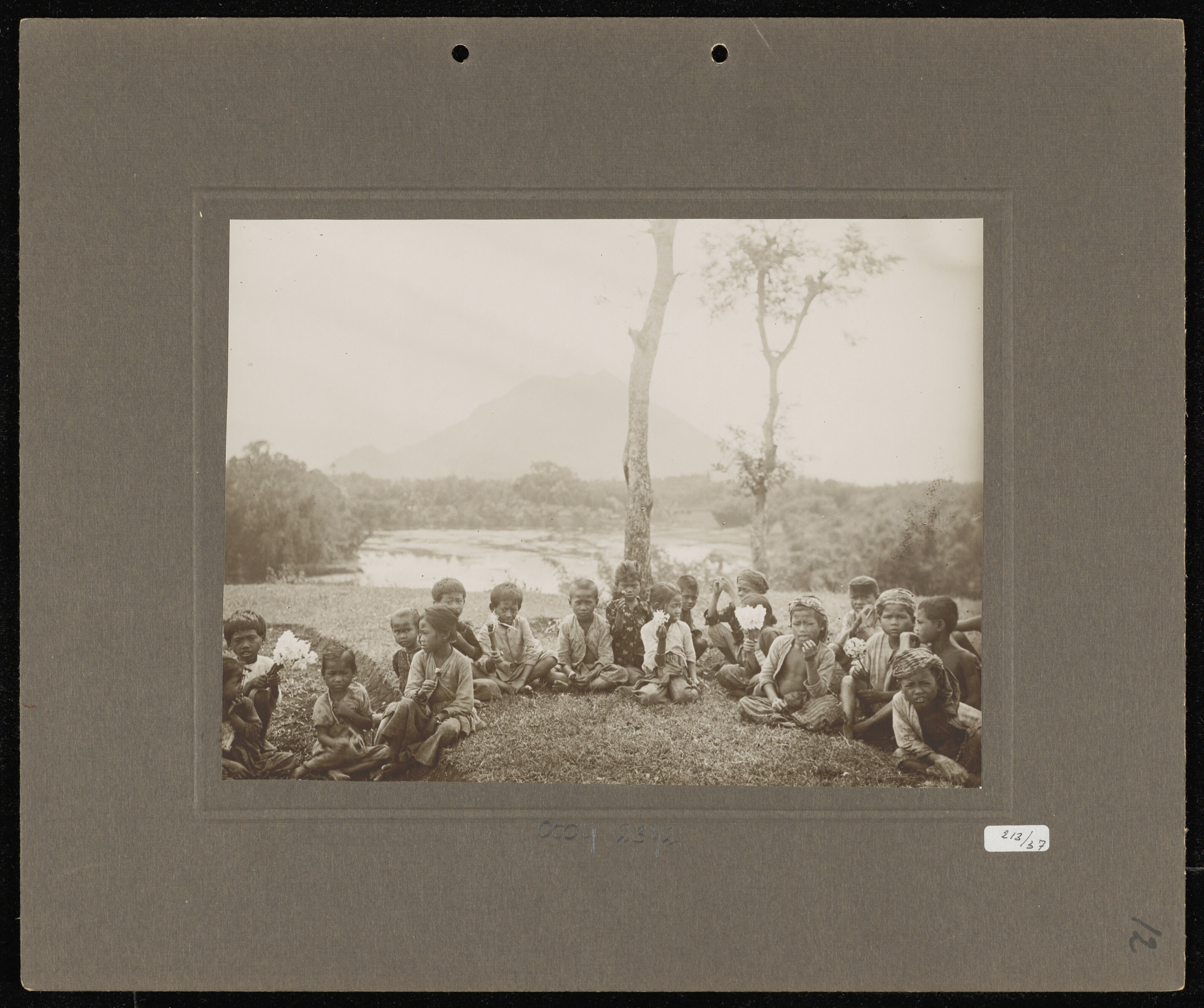 Begging and flower selling Javanese children near La...