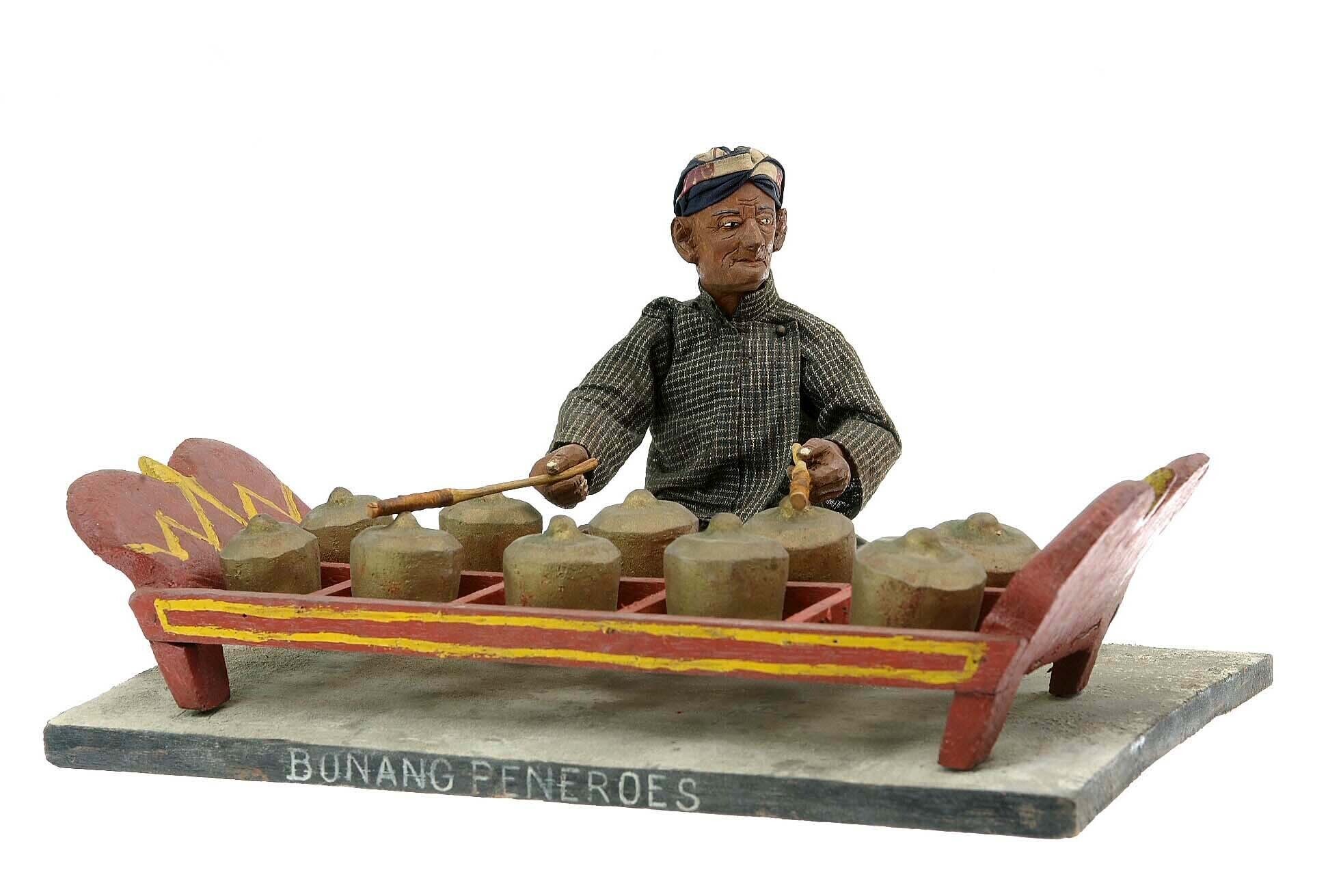 Wooden model of a percussion instrument, with player